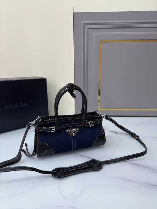 PRA Softlux denim handbag 1BA486 NAVY small size 23.5CM