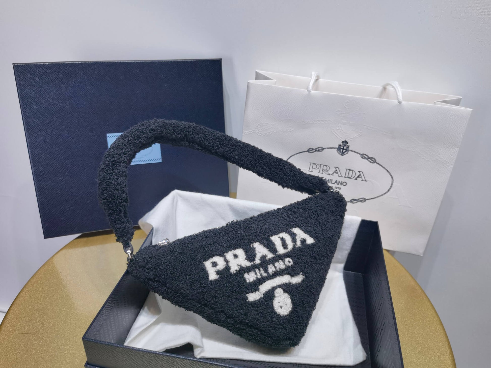 1ne043 black new terry fabric armpit bag subaxillary bag clutch bag
