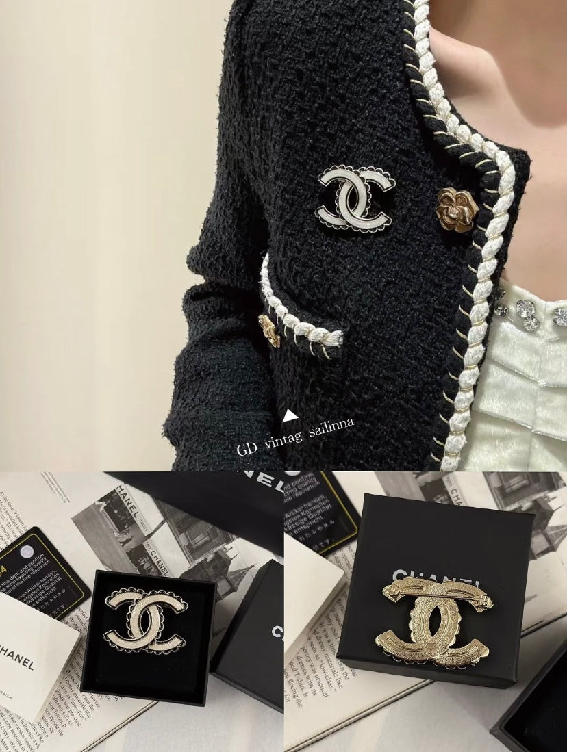 Introducing the glamorous 24 Black Enamel Lace Double C Brooch! Enhance your style with this unique brooch featuring intricate black lace design and sparkling enamel details. The perfect accessory for a cute and slightly sexy look with a strong sense of layering. Elevate your daily outfits with a touch of girlish vibe and showcase your beautiful and rich temperament.