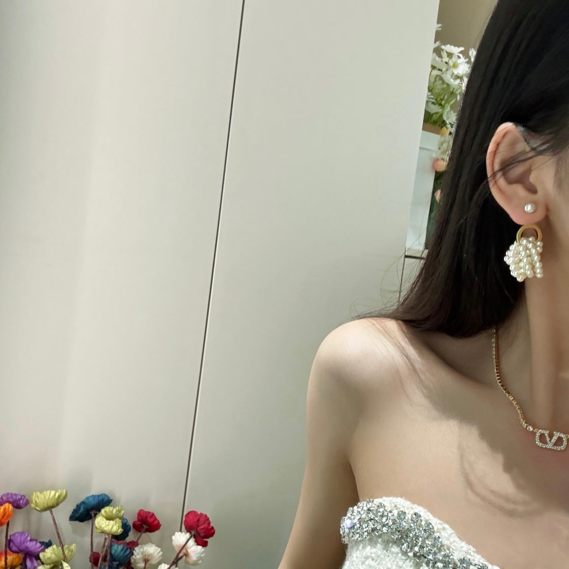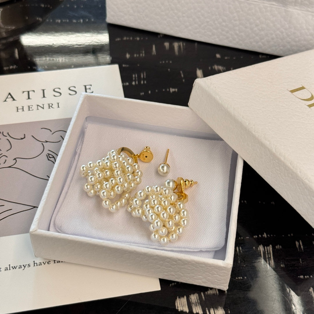 Experience luxury with these D-Bow Gold Multi layered Pearl Earrings EHC118. Made with gold veneer metal and adorned with white resin beads, these earrings are a must-have for the elite. Elevate your style and showcase your refined taste with these exquisite earrings.