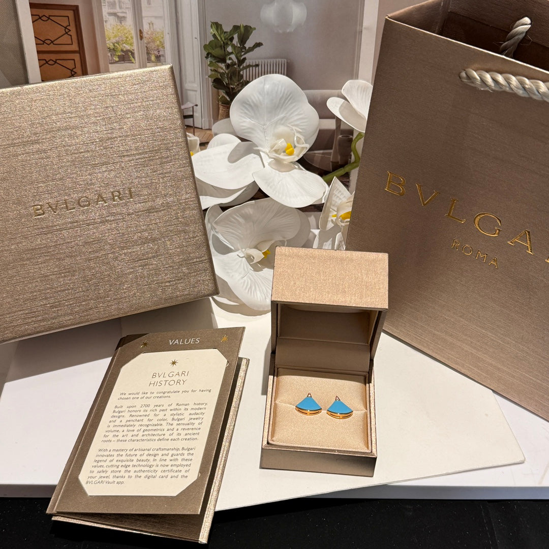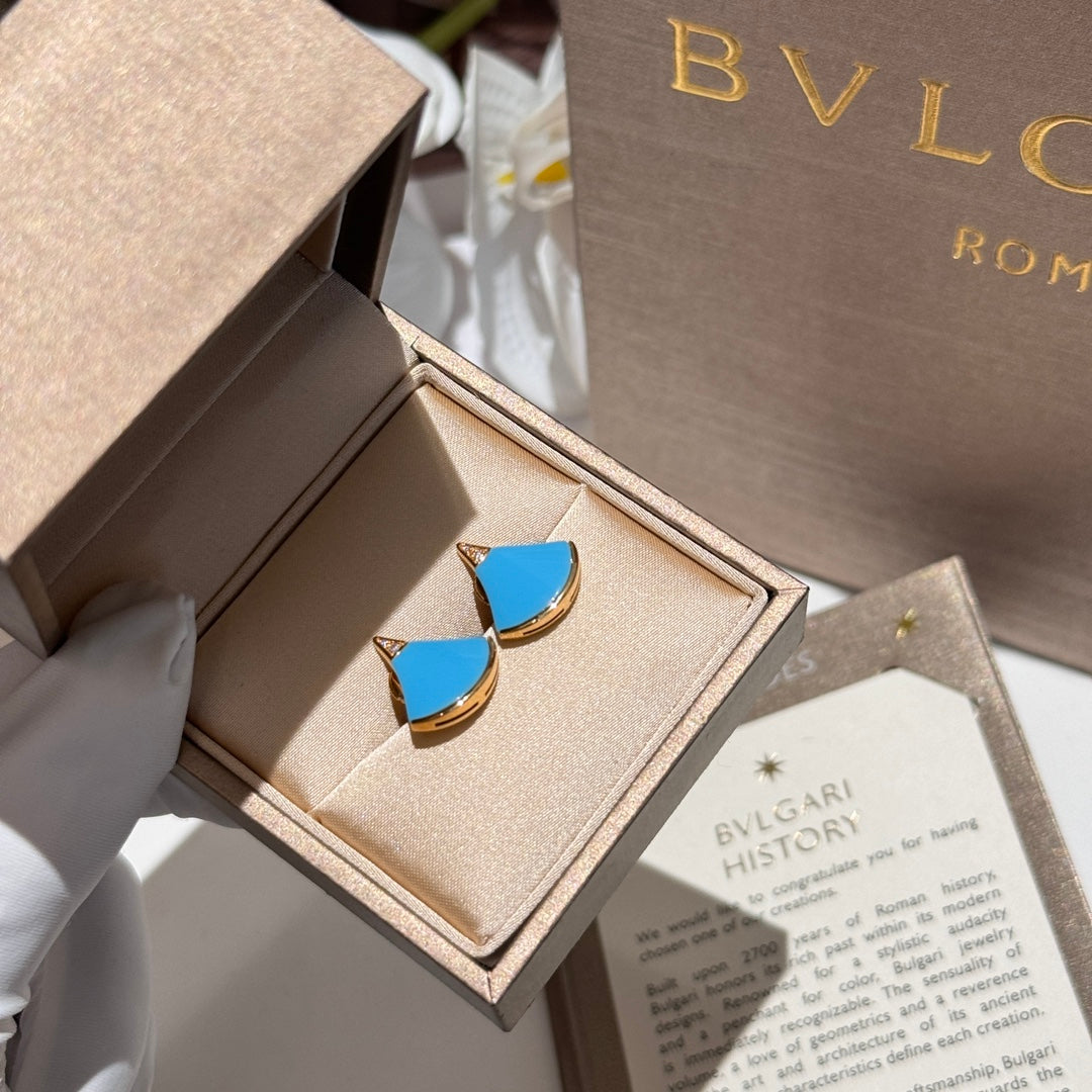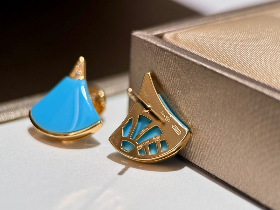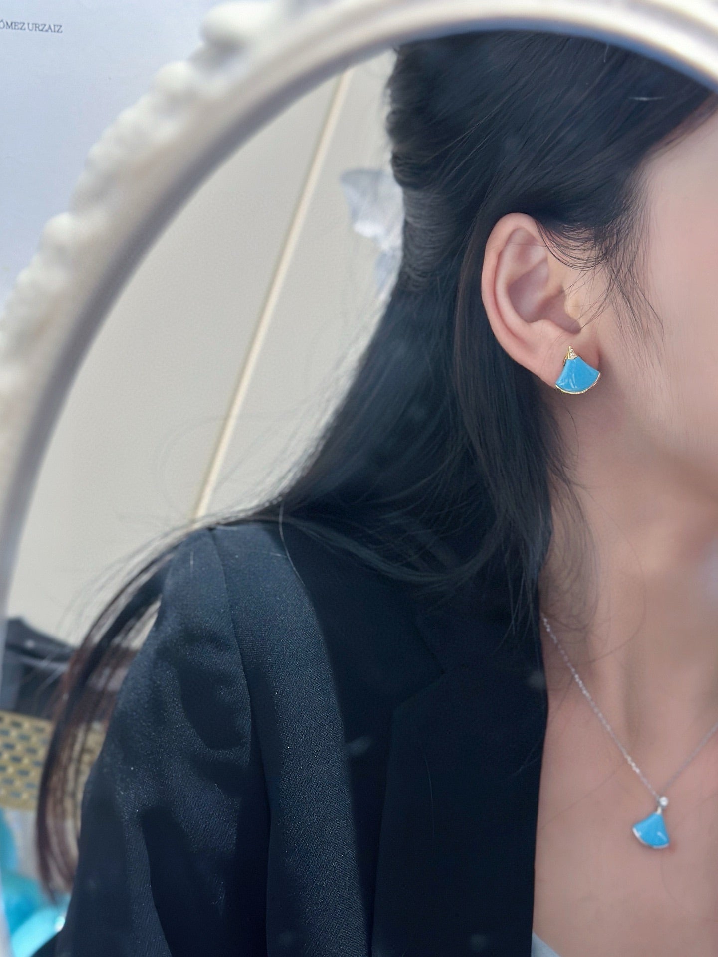 Elevate your style with Baojia Diva's Dream Earrings. Crafted with natural turquoise plated in 18k gold, these fan-shaped mini earrings are both exquisite and versatile. Make a statement with this high-end, must-have accessory.