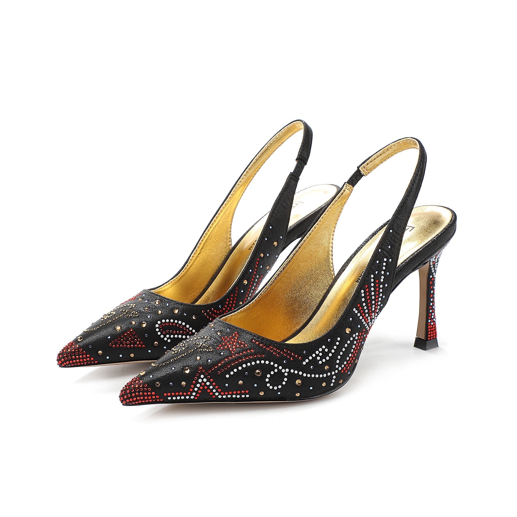 Featuring oversized GJ rhinestone pointed high heels and classic back air sandals, the goddess collection exudes a socialite vibe.