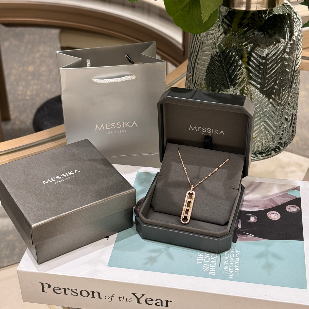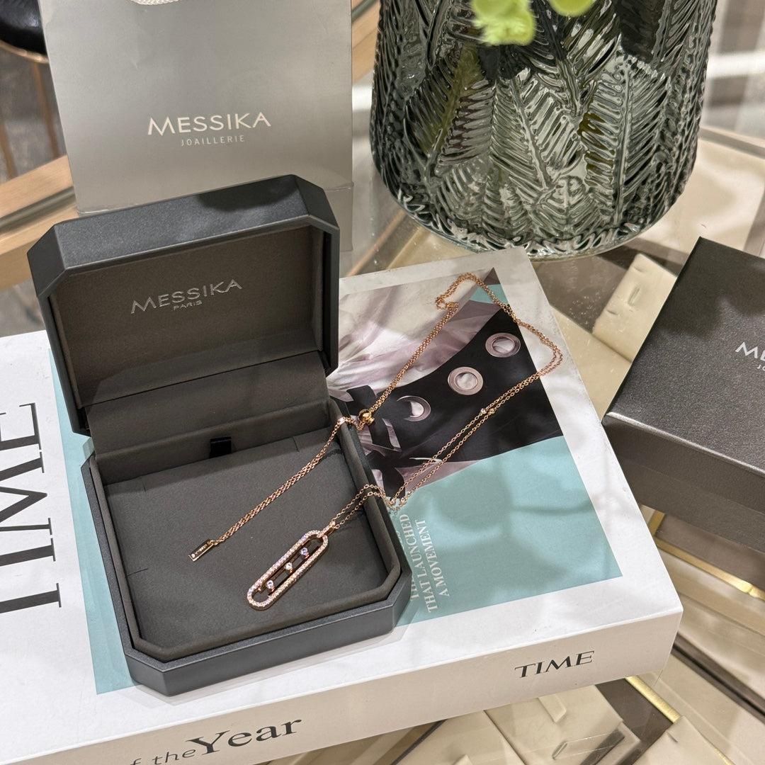 Upgrade your style with the Fashionable and Versatile Luxury Long Necklace XLXD009C50. Dynamic and elegant, this necklace features the Starlight Messika diamonds that shine freely, adding a touch of sophistication to any outfit. The Move 10th long necklace on the chest exudes a confident and independent attitude, while the diamond slide illuminates new inspiration. Perfect for stacking and creating a modern look.