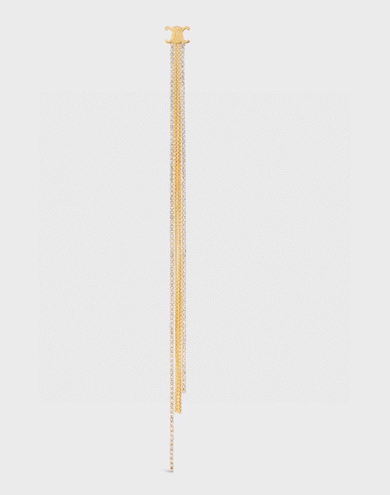 Introducing Celine, the Goddess of Temperament, in the form of these new PRECIOUS earrings. Made of high-quality brass and electroplated with 18k gold, these stylish earrings are a hot selling product. The unique and avant-garde design is a must-have for the fashionable woman looking to make a statement. Upgrade your style with these tassel earrings!