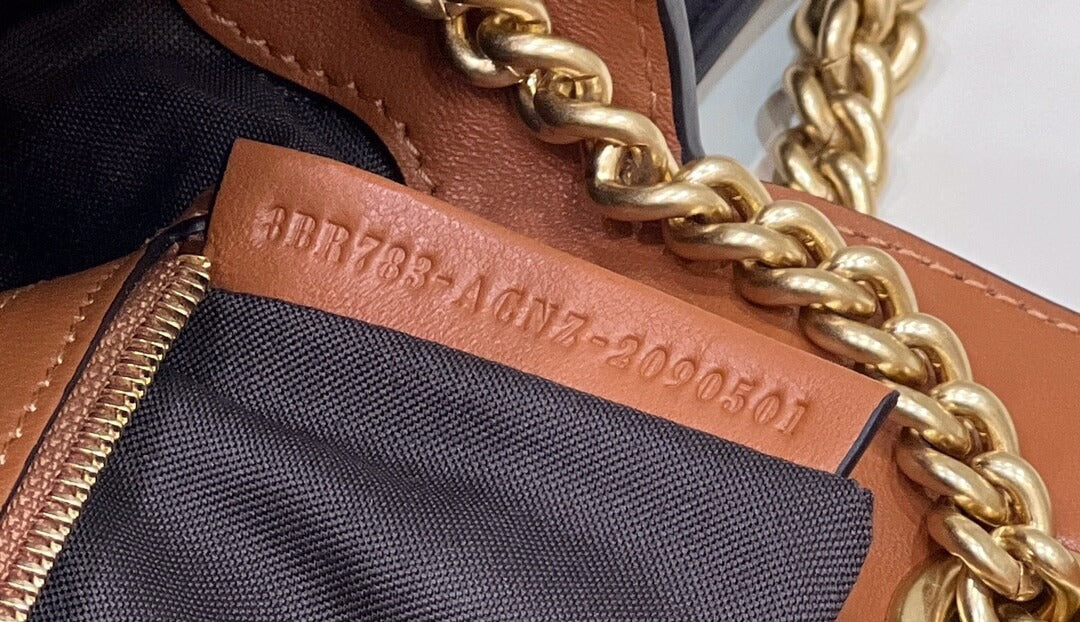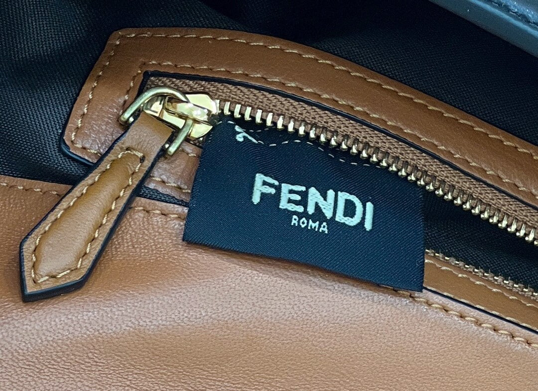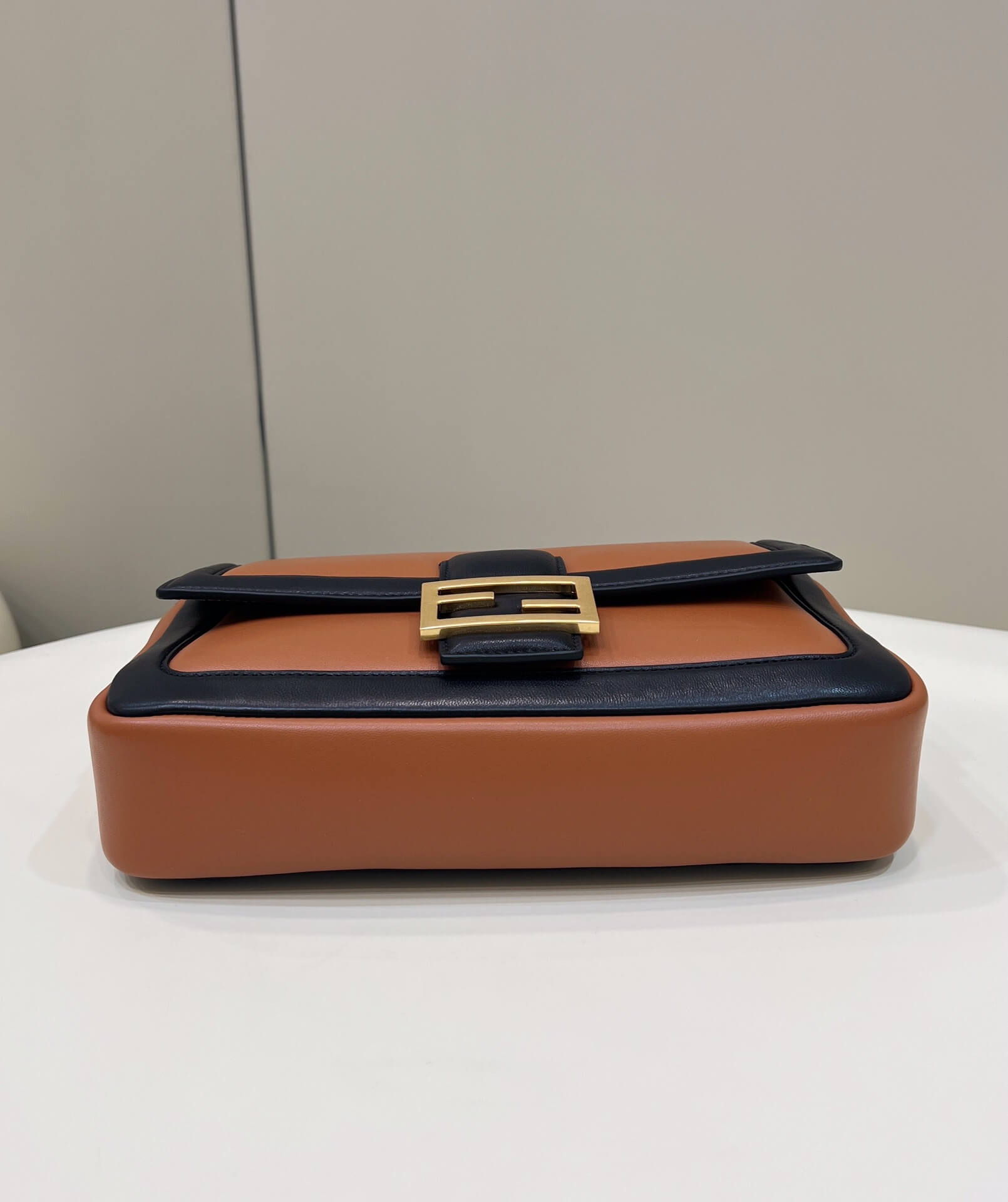 fd look baguette chain bag plain pattern leather black with brown 70220