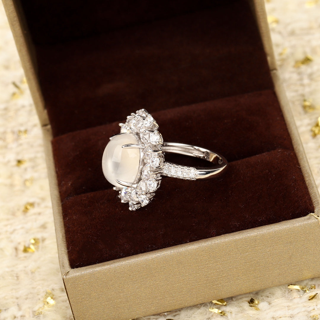 Experience the exquisite craftsmanship of our Fupo Series 925 Pure Silver New Chinese Water Foam Jade Flower Ring. Carefully crafted with high-quality jade and 925 pure silver, featuring 18K real gold electroplating and cutting-edge half wall inlay technology. The result is a stunning, high-end piece that will surpass your expectations. Size: 6-7-8