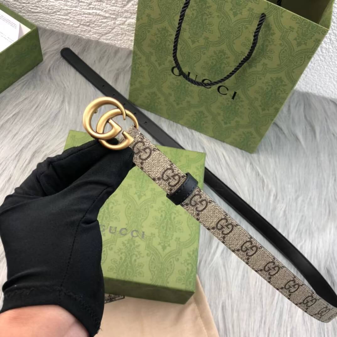 This GG MARMONT REVERSIBLE THIN BELT for Women is designed for versatility and style. Crafted with a golden buckle, it features a reversible design for a range of styling options. Perfect for dress up or down, this belt is sure to amplify any look.