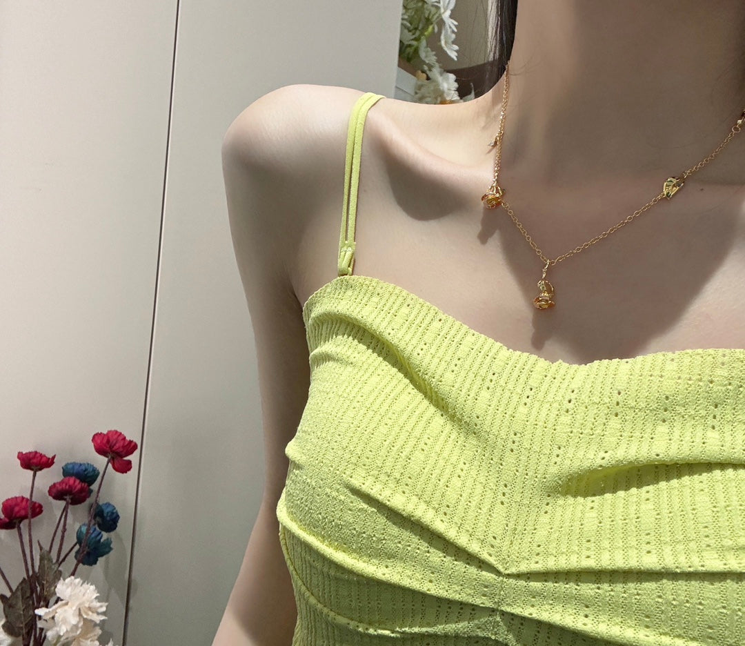 Introducing the Golden Rose Vine Enamel Necklace XLC115, a stunning addition to any summer ensemble. Each rose and leaf is delicately hand-painted, creating a three-dimensional and lifelike design. Its gentle color palette and concave shape make it a must-have for any fashion-forward individual. Upgrade your jewelry collection with this beautiful and unique necklace.