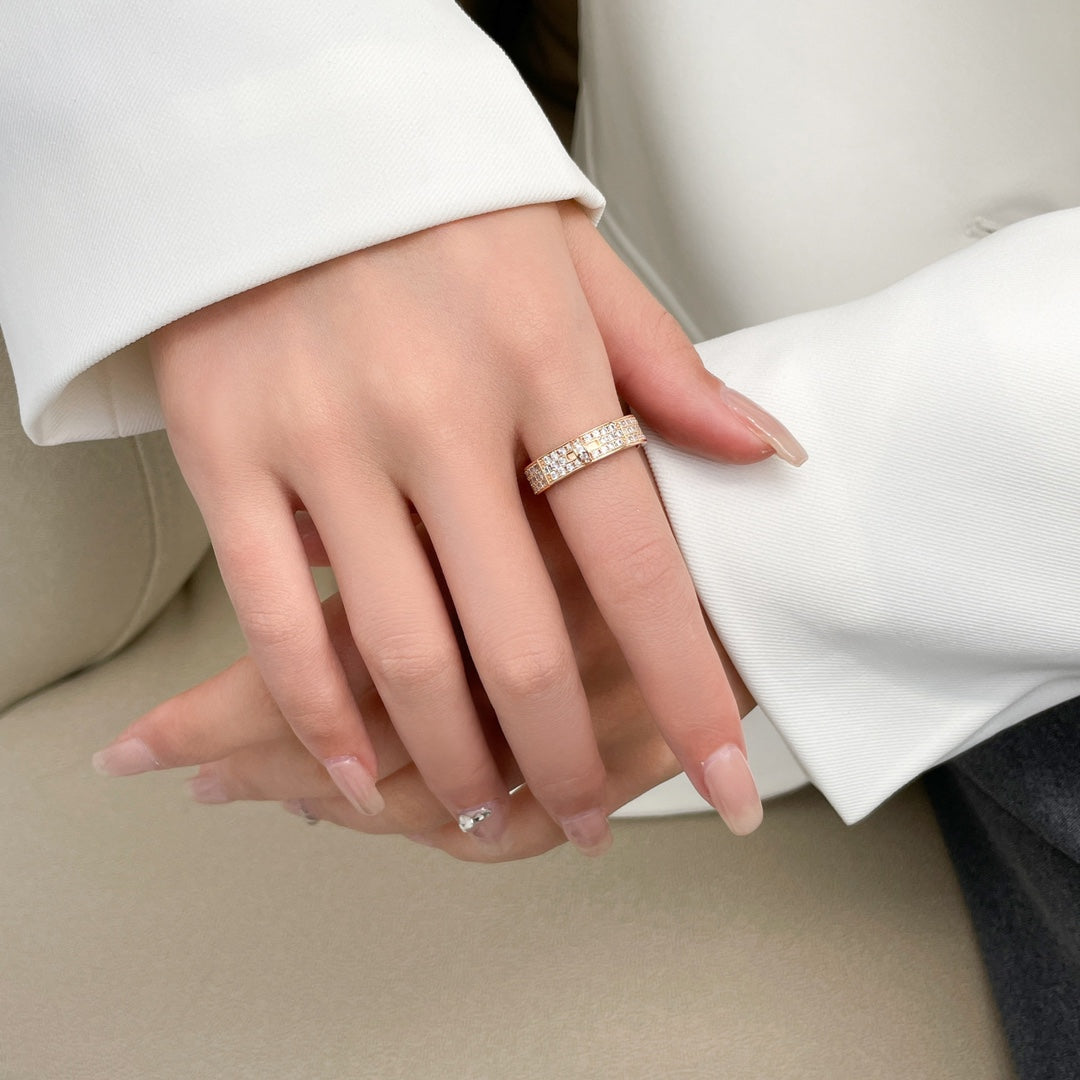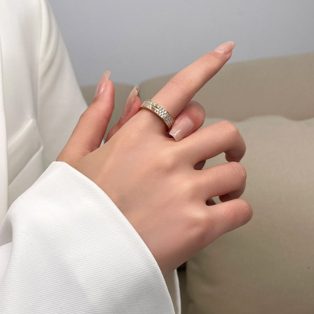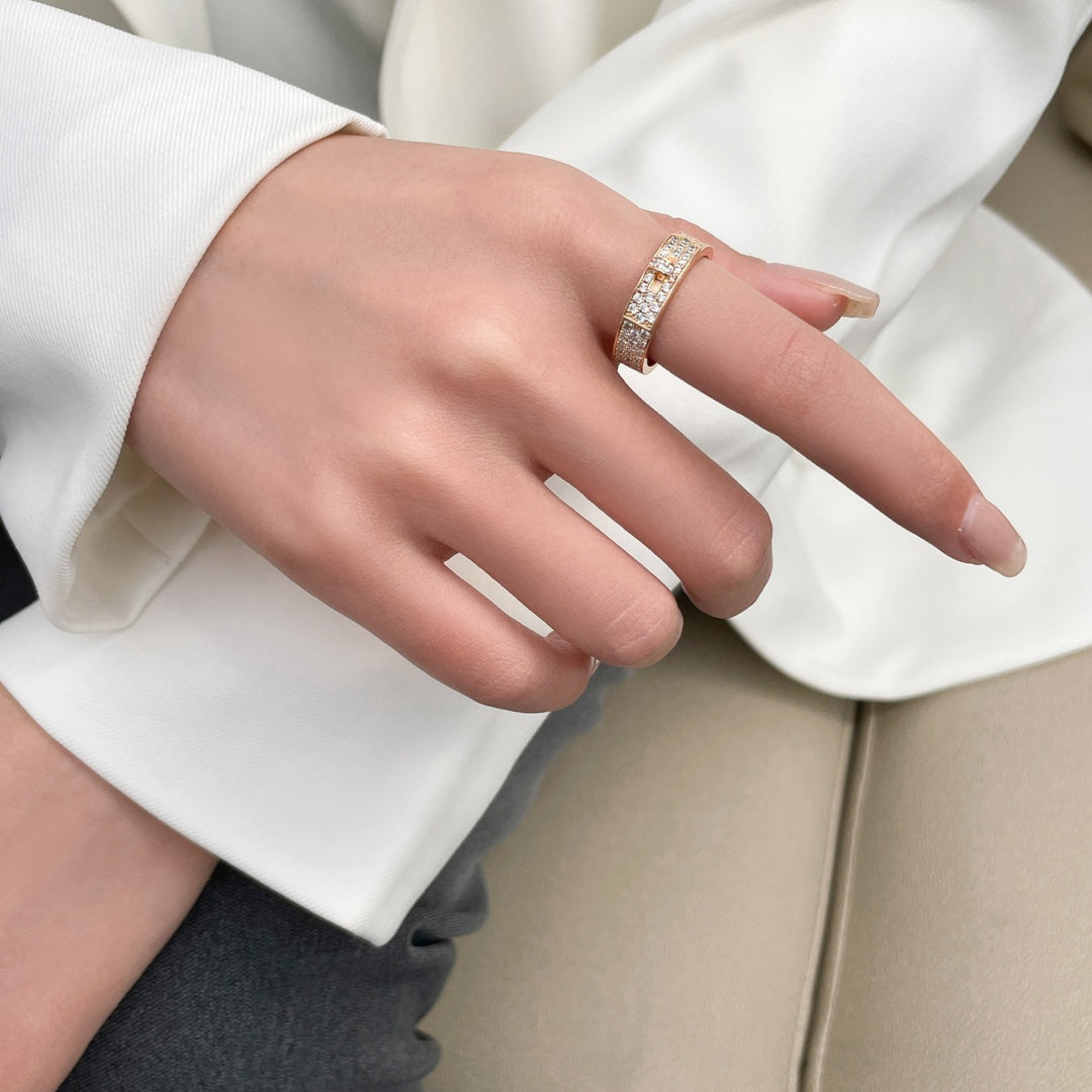 This platinum ring features a unique design with a lock head and pig nose, adorned with full diamonds. The elegant and eye-catching style exudes luxury and sophistication, making it a perfect accessory for any outfit. Add a touch of glamour to your look with this H ring.