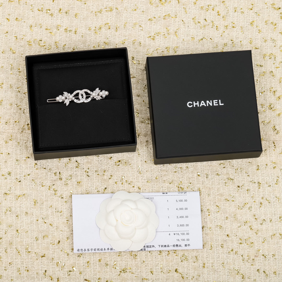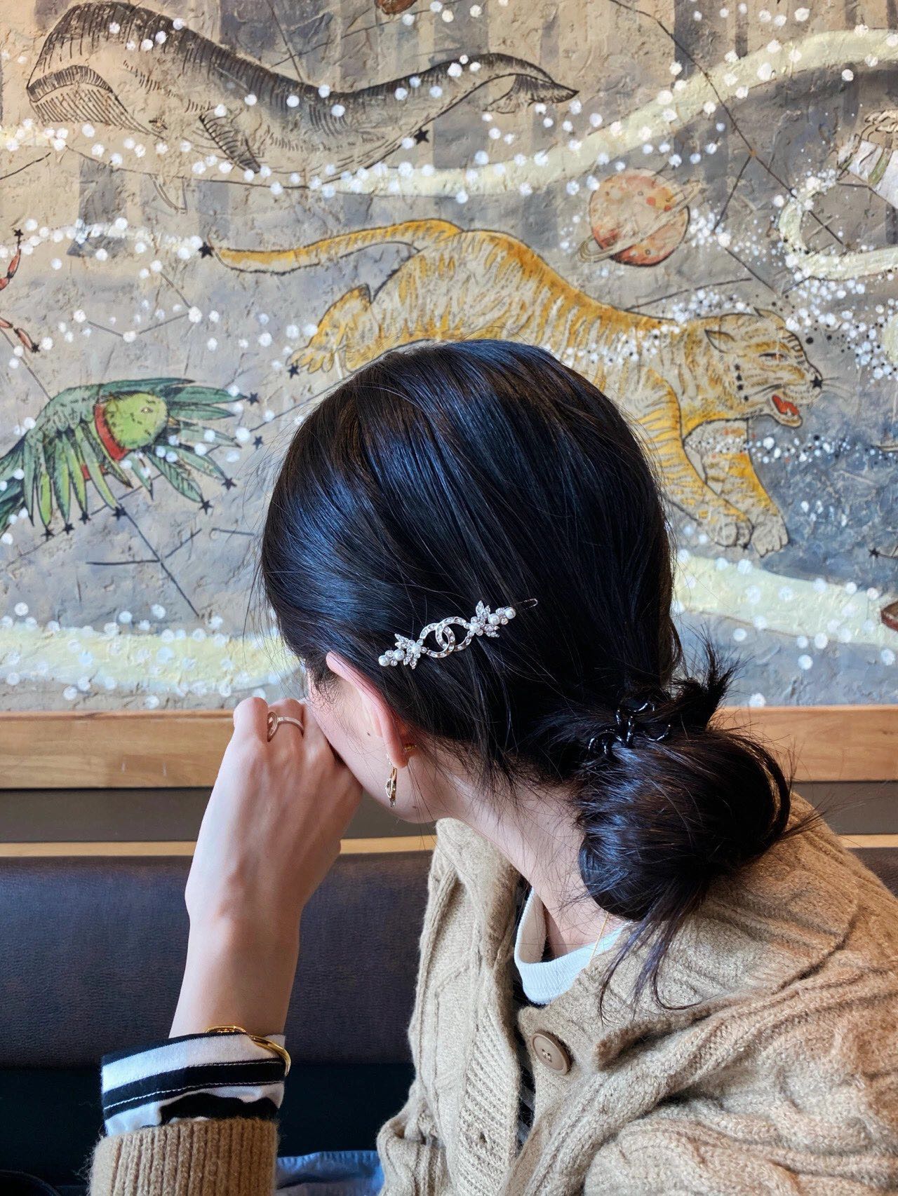 Elevate your style with the High Grade Silver Pearl and Diamond Hair Clip FJA2. This Chanel hairpin, adorned with Swarovski diamonds and pearls, adds a touch of elegance and sophistication to any outfit. Its narrow design exudes a retro charm, making it perfect for any occasion. Trust in its consistent ZP quality for a shining finishing touch.