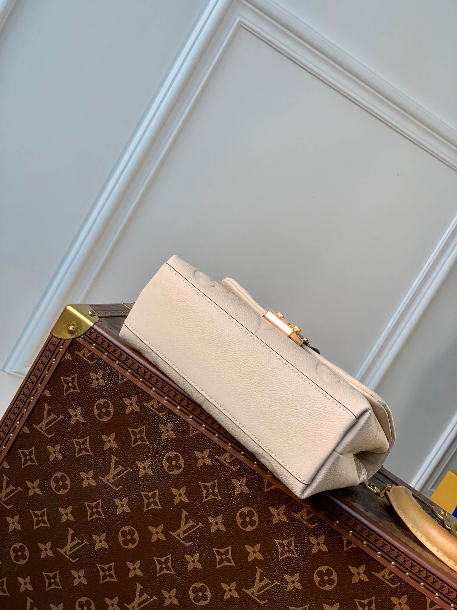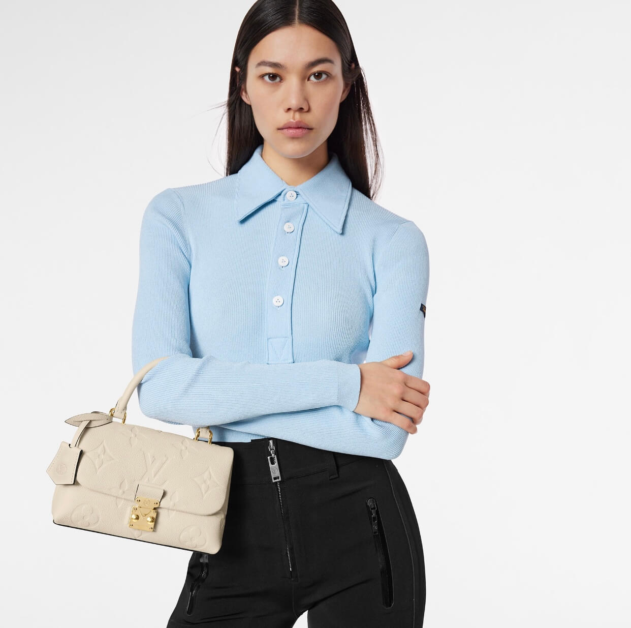 This Madeleine BB handbag is made from Monogram Empreinte leather with an over-sized Monogram pattern embossed and printed on the leather. This adorably compact bag has a red lining and closes with the same S-lock found on the Pochette Metis. The single, articulated top handle brings a ladylike feel while the removable strap provides additional carry options materials: Bicolour Monogram Empreinte leather 24 x 17 x 8.5 cm (Depth x Height x Width) Black / Beige Embossed, grained cowhide leather Cowhide-leather trim Microfiber lining Gold-color hardware Central zipped pocket Inside flat pocket Key bell Strap: Removable, adjustable Strap drop:50.0 cm Strap drop max:55.0 cm Handle: Single This reference is either Made in France, Spain, Italy or in the US. $2850