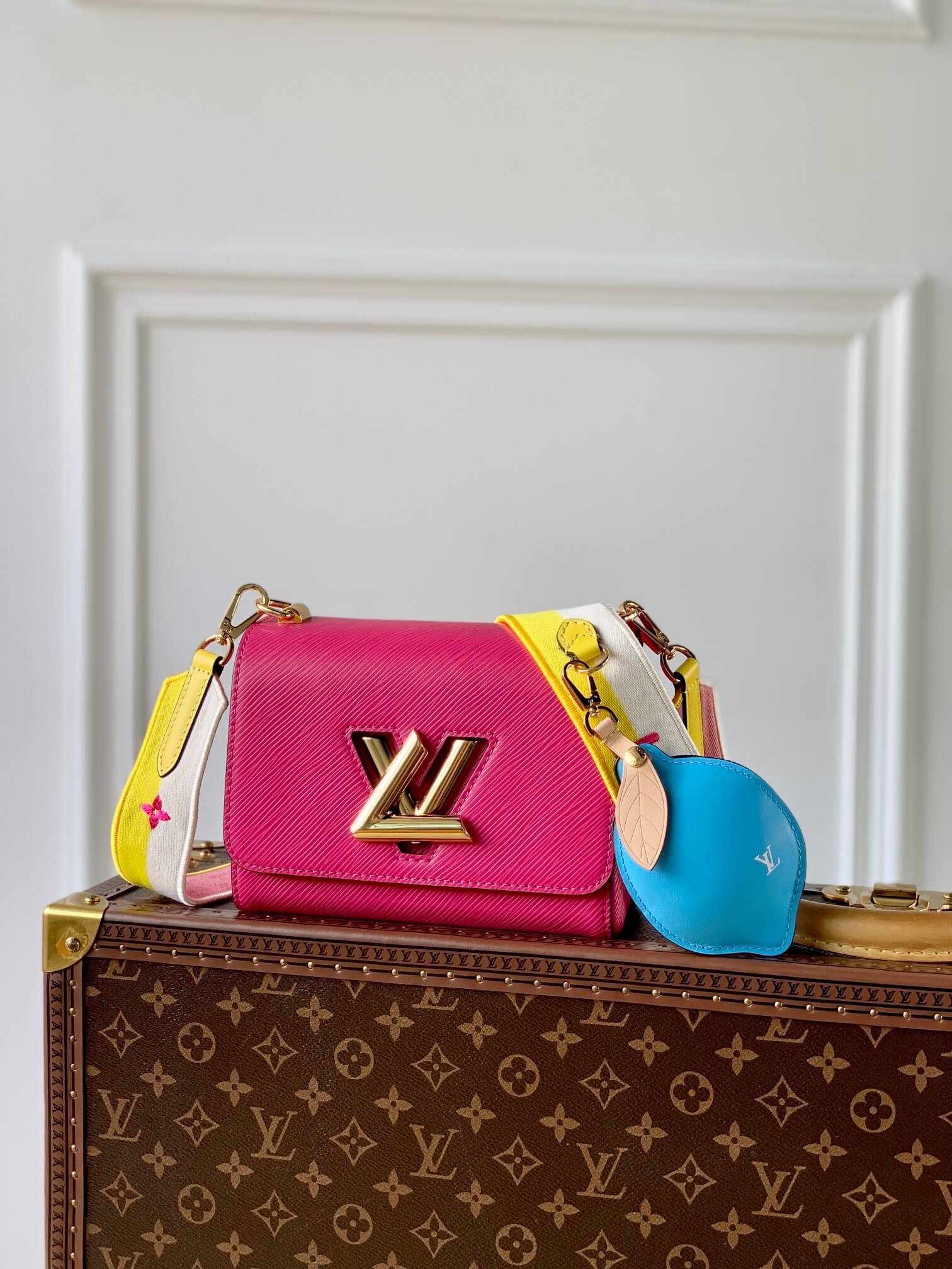 Crafted from the House¡¯s emblematic Epi leather, the Twist MM chain bag features the now-iconic LV Twist lock, a sculptural signature in silvery polished metal. Unexpectedly roomy thanks to the cleverly designed ¡°wave¡± base, this beautifully made bag is a fashionable day-to-evening companion. The sliding chain strap can be doubled for shoulder carry or lengthened for cross-body wear. A New Classic of the House, the Twist bag was introduced at the 2015 Cruise show.