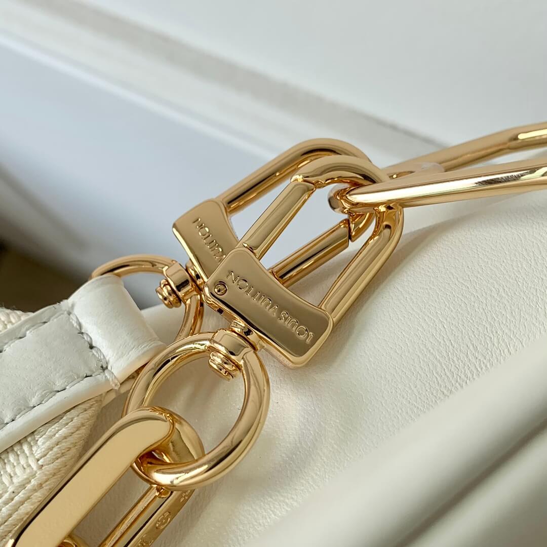 The Cousin small handbag is made of Monogram embossed sheep leather, and the floral pattern is ingeniously integrated into LV letters and Monogram flowers. The rugged chain is convenient for the shoulder and back, and the adjustable fabric wide shoulder strap can be used to cross body easily.