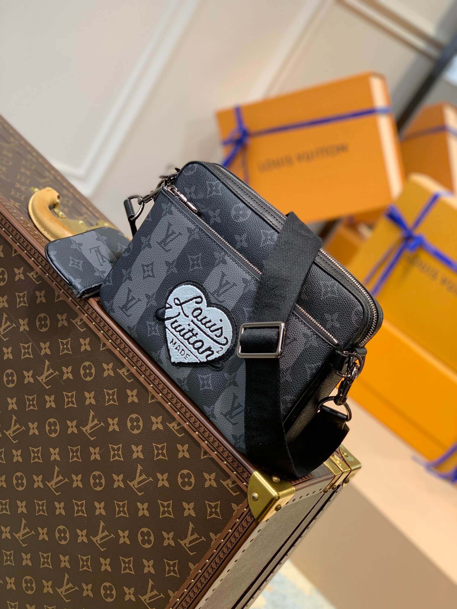 m45965 nigo trio shoulder bag cross body bags messenger bag black mens bag monogram