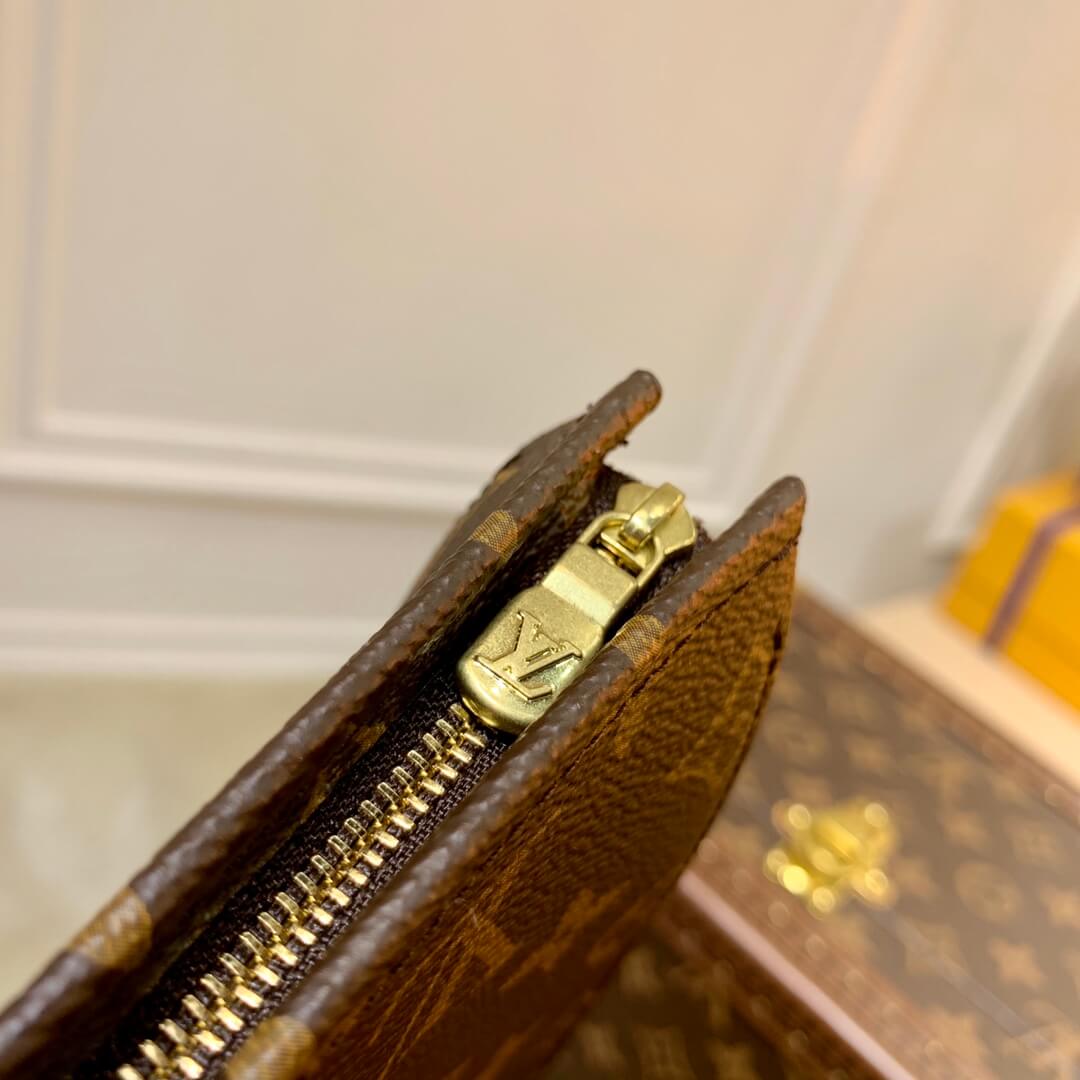 The largest of the toiletry pouch in Monogram canvas boasts a spacious interior with gusset sides for easy storage. It slips easily into a handbag. Detailed Features