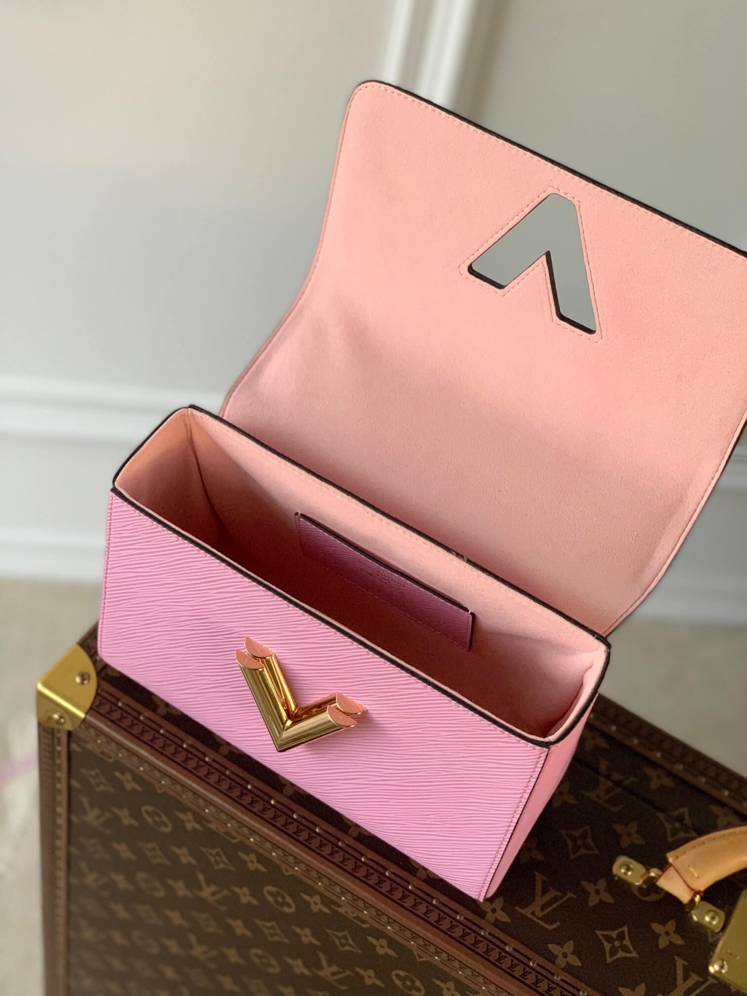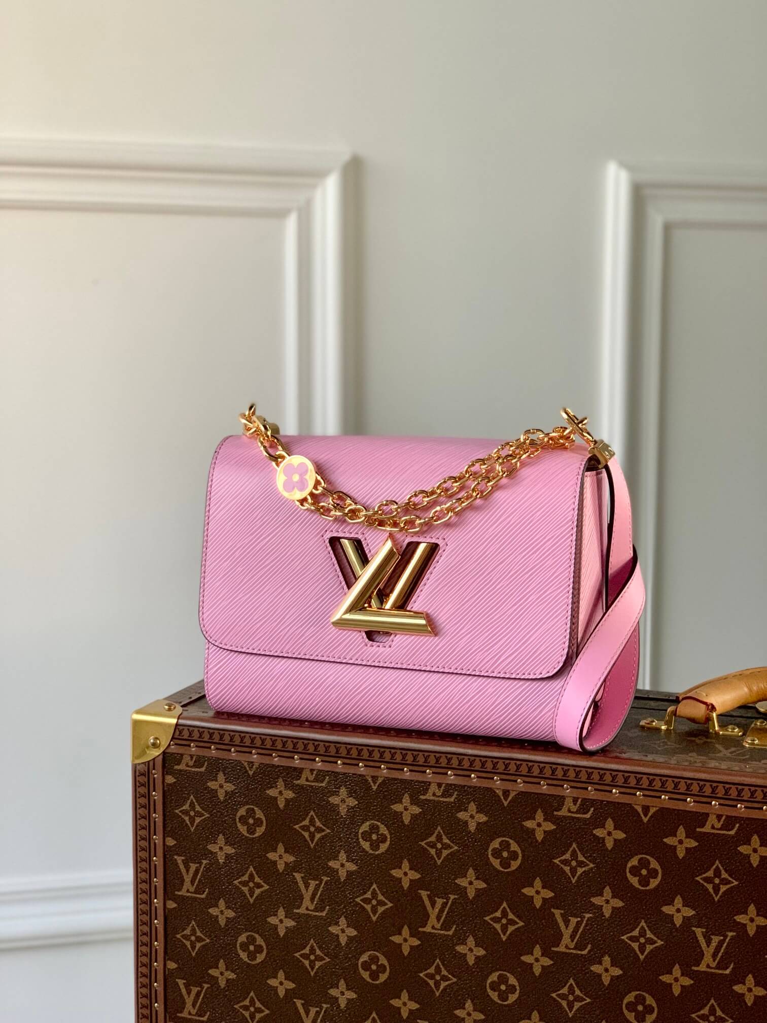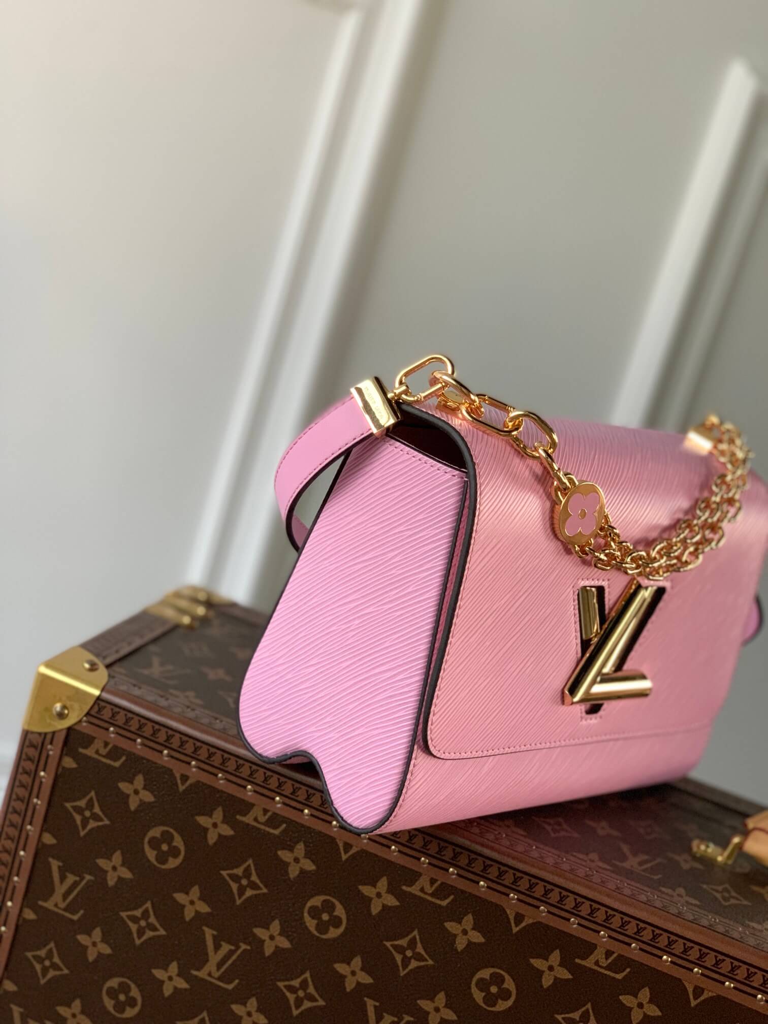 Crafted from the House¡¯s emblematic Epi leather, the Twist MM chain bag features the now-iconic LV Twist lock, a sculptural signature in silvery polished metal. Unexpectedly roomy thanks to the cleverly designed ¡°wave¡± base, this beautifully made bag is a fashionable day-to-evening companion. The sliding chain strap can be doubled for shoulder carry or lengthened for cross-body wear. A New Classic of the House, the Twist bag was introduced at the 2015 Cruise show.