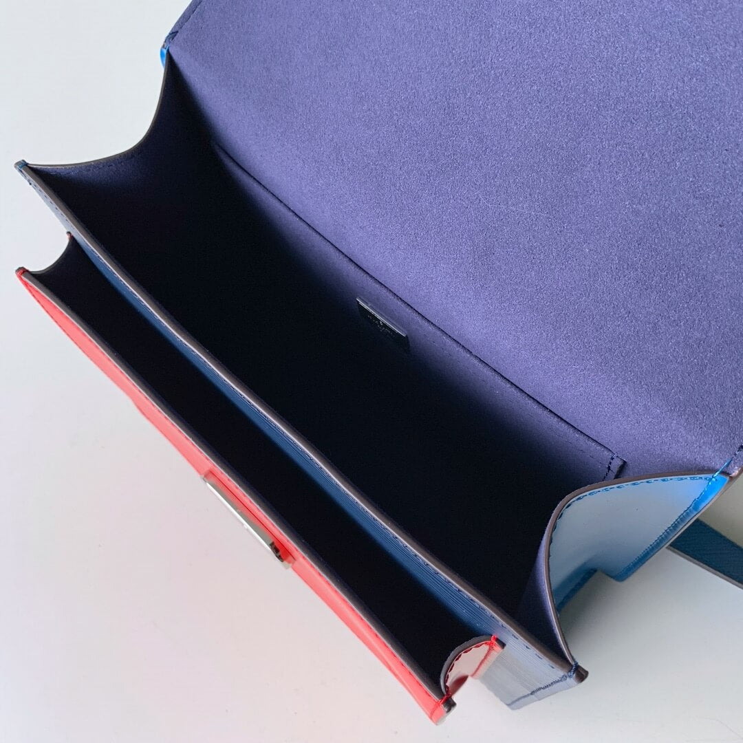 This soft trunk handbag is soft and shows the reinterpretation of the postman's bag. It is an ideal travel companion. The characteristic elements such as the metal bag angle are derived from the classic pull rod box design of the archives. In addition to the practical plastic structure, the water ripple color matching box and the water ripple color matching suction buckle cover are hanging tags with wide shoulders. The postman's OO [handshake] [handshake] shoulder strap is equipped with matte resin chain strap to give off modern style.