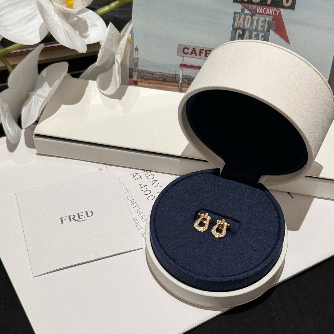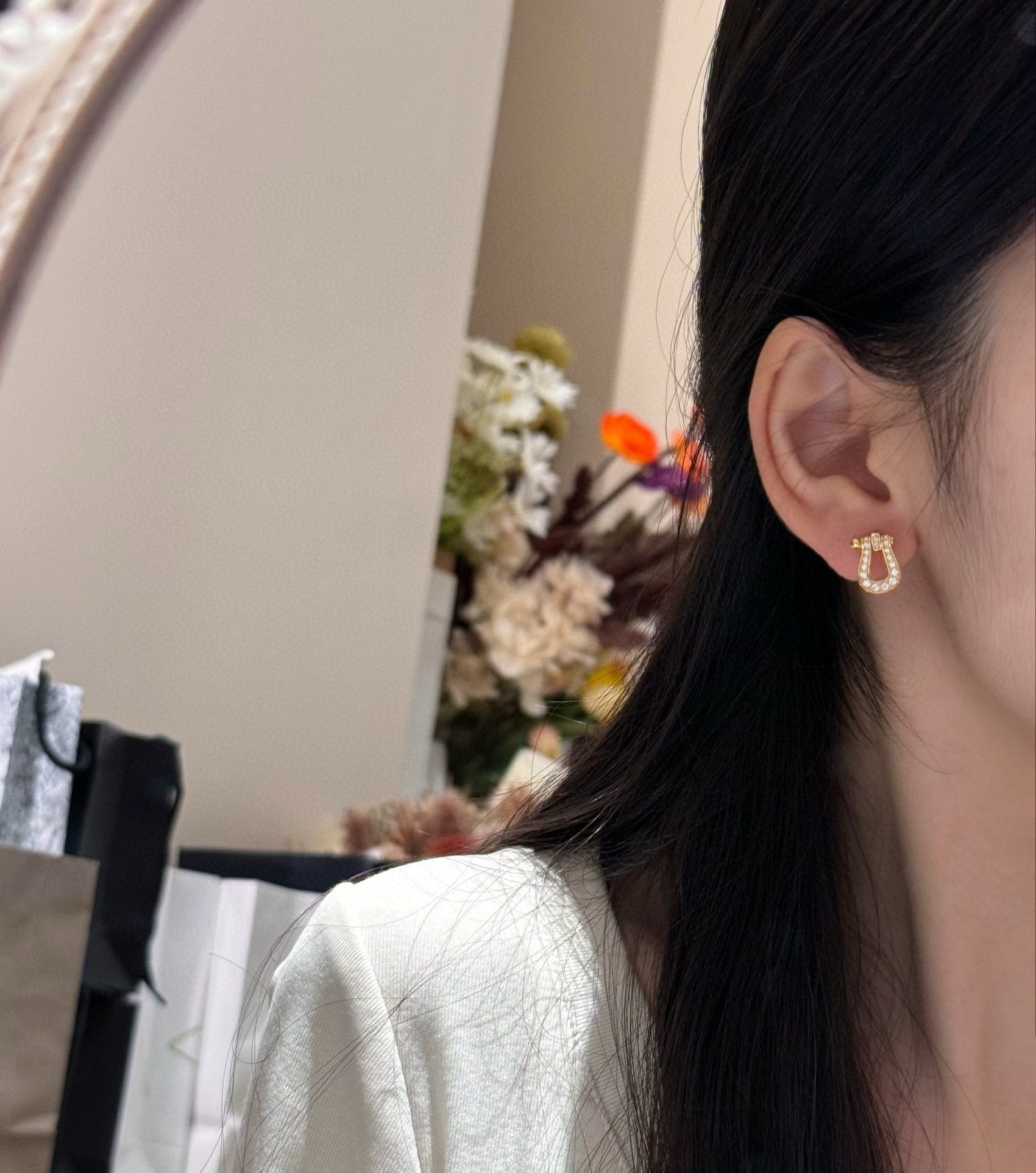 Introducing our New Daily Versatile Horseshoe Buckle Full Diamond Medium Earrings. Exquisite and delicate, these earrings are a versatile daily helper that will elevate any outfit. With the same style for men and women, they are the perfect addition to any jewelry collection. Made with a beautiful yellow gold color and adorned with stunning diamonds, these earrings are truly a statement piece.