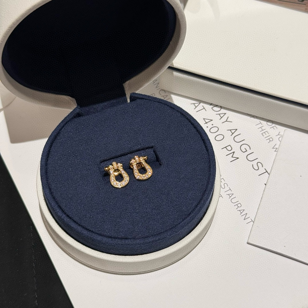 new daily versatile horseshoe buckle full diamond medium earrings ehse002c37