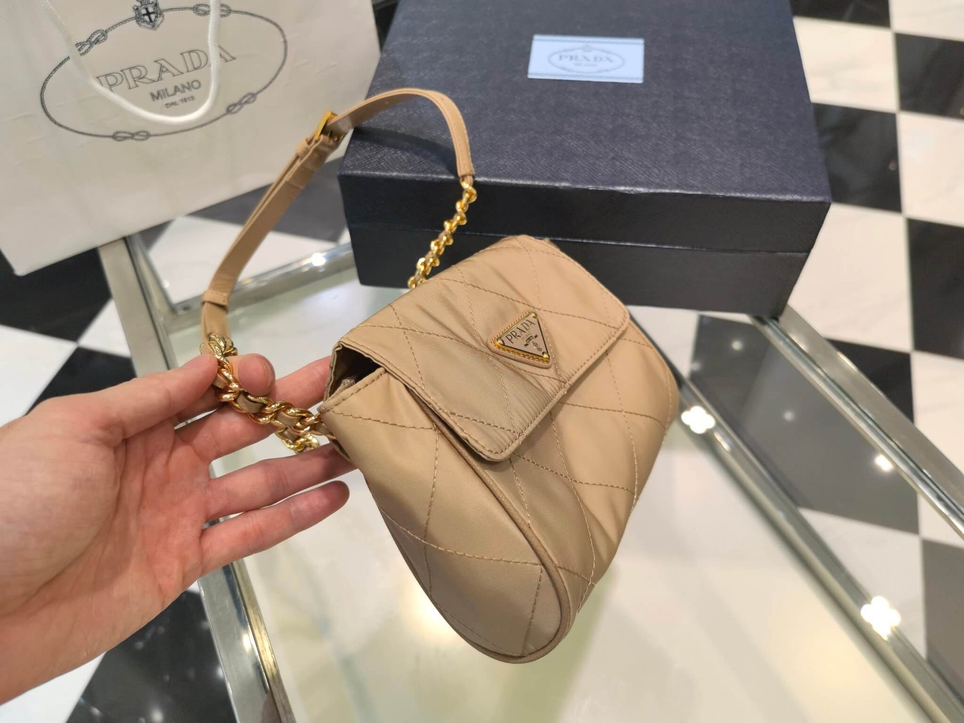 pra 1bd622 rhombus chain satchel yellow 18cm free shipping shoulder bag cosmetic bag