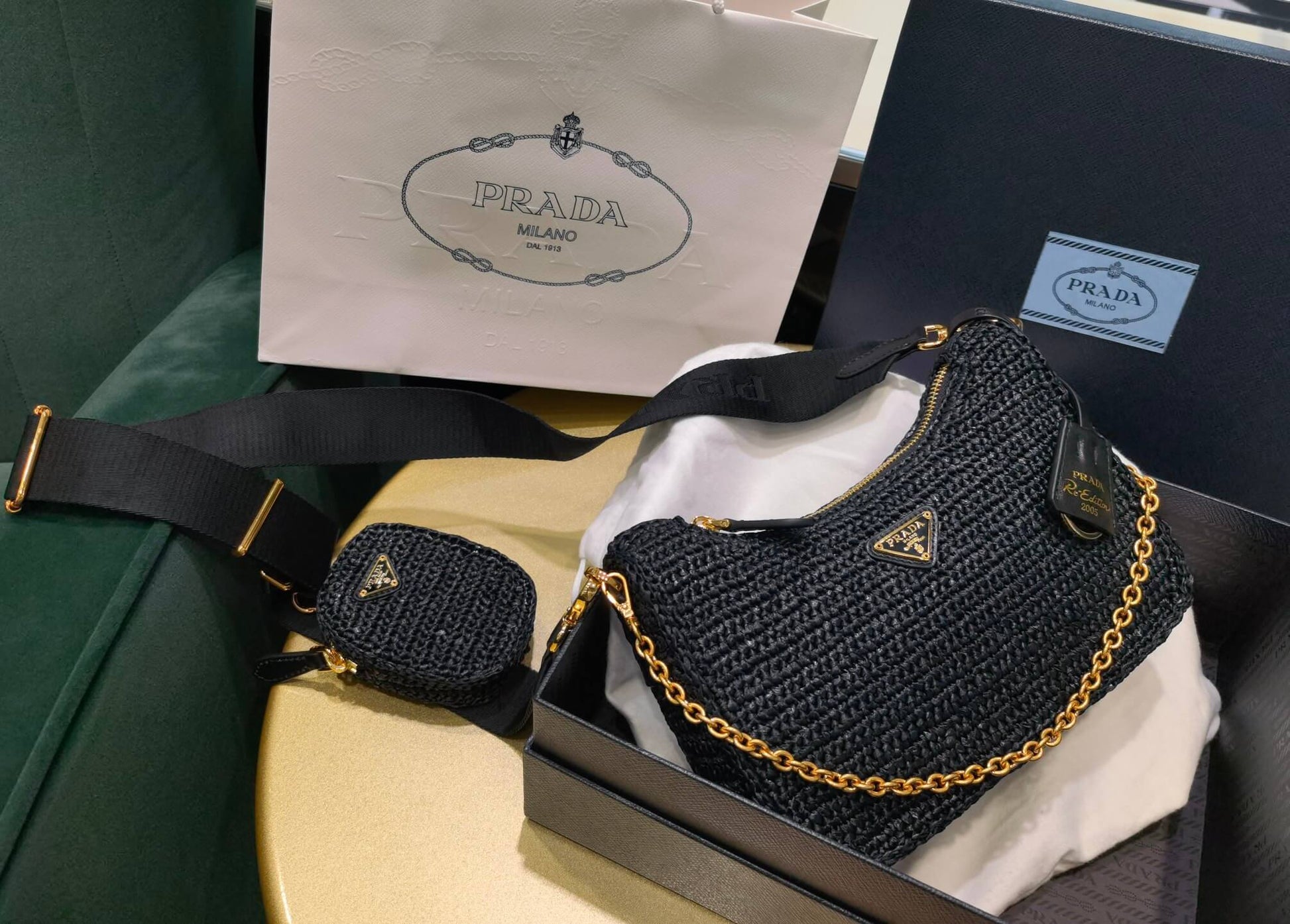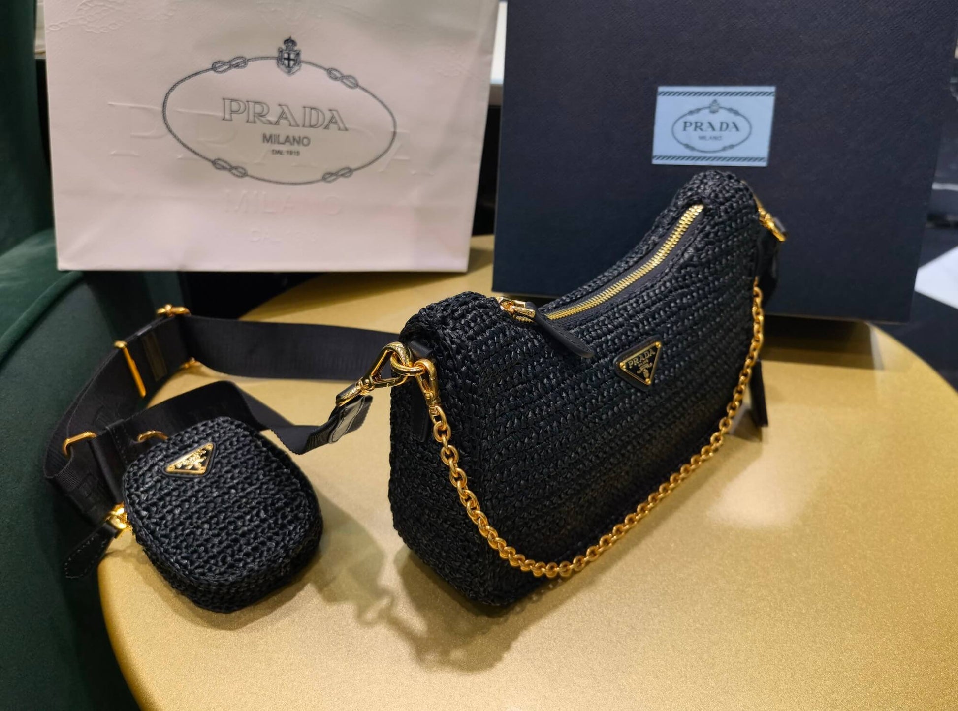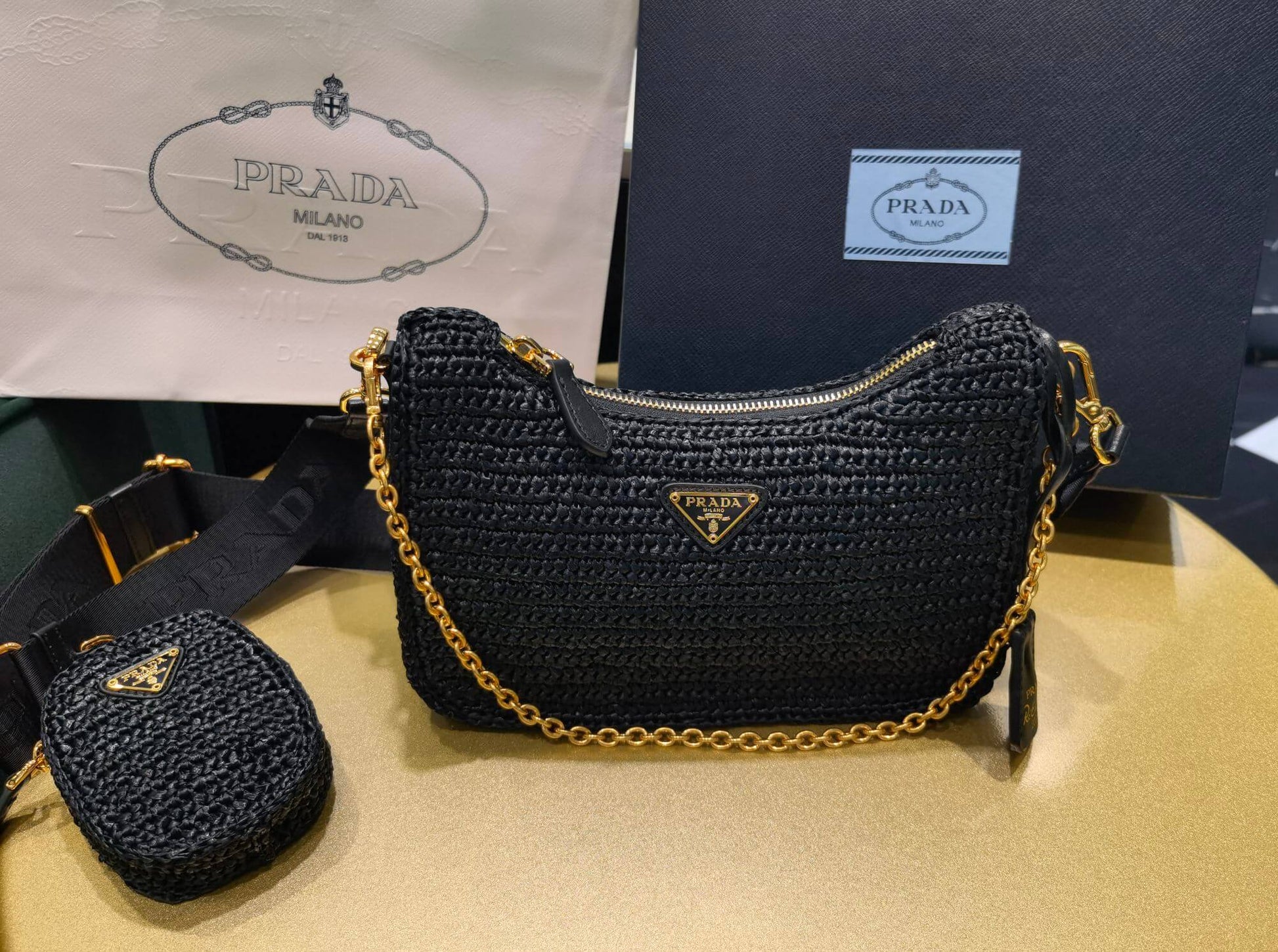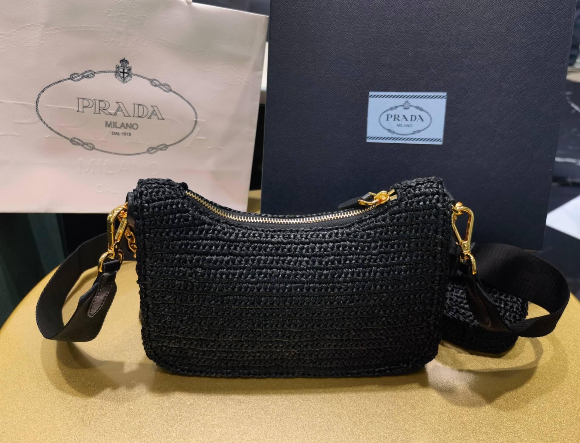 pra 1bh204 three in one hobo shoulder bag 23cm black