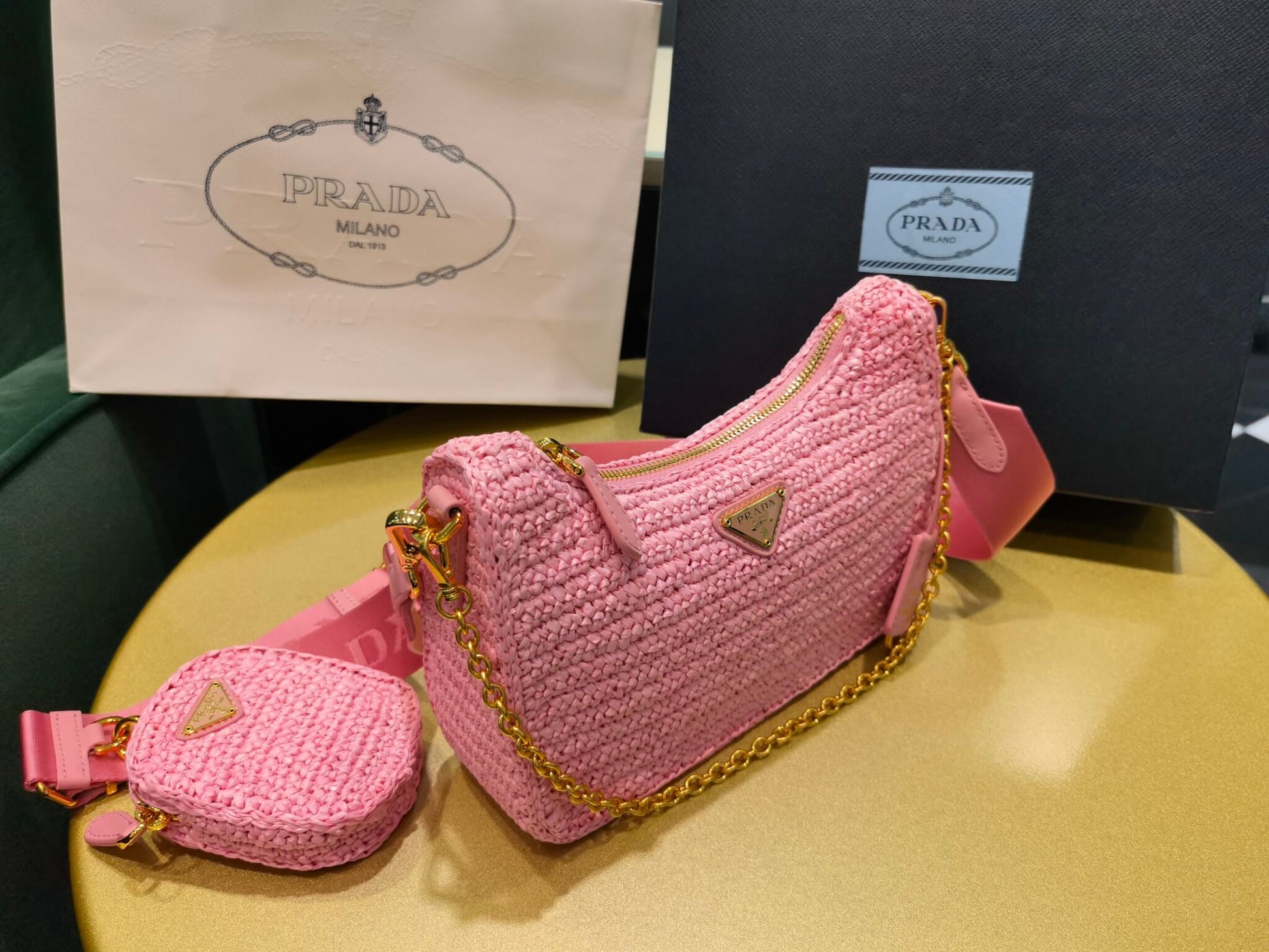 pra 1bh204 three in one hobo shoulder bag 23cm pink