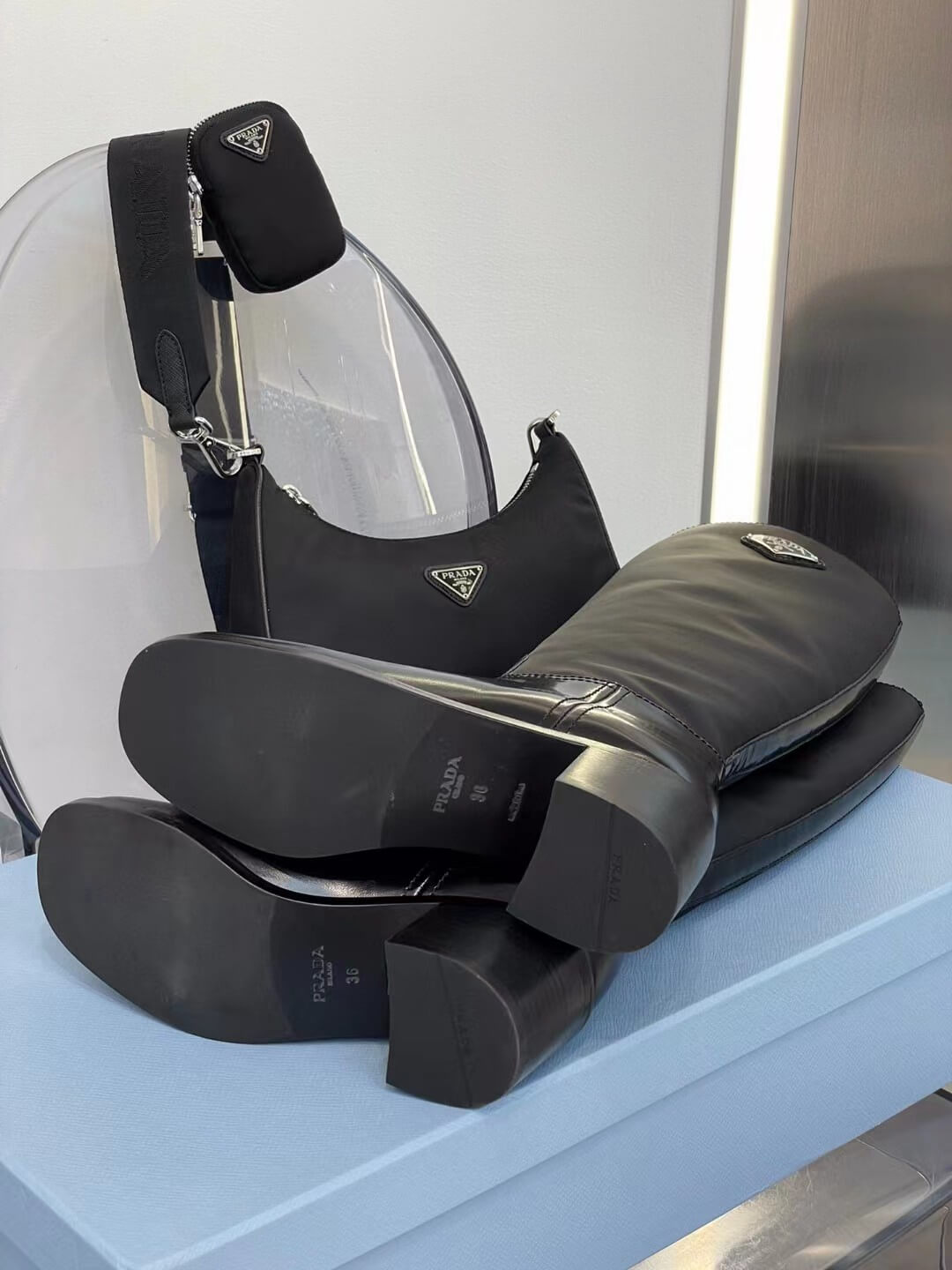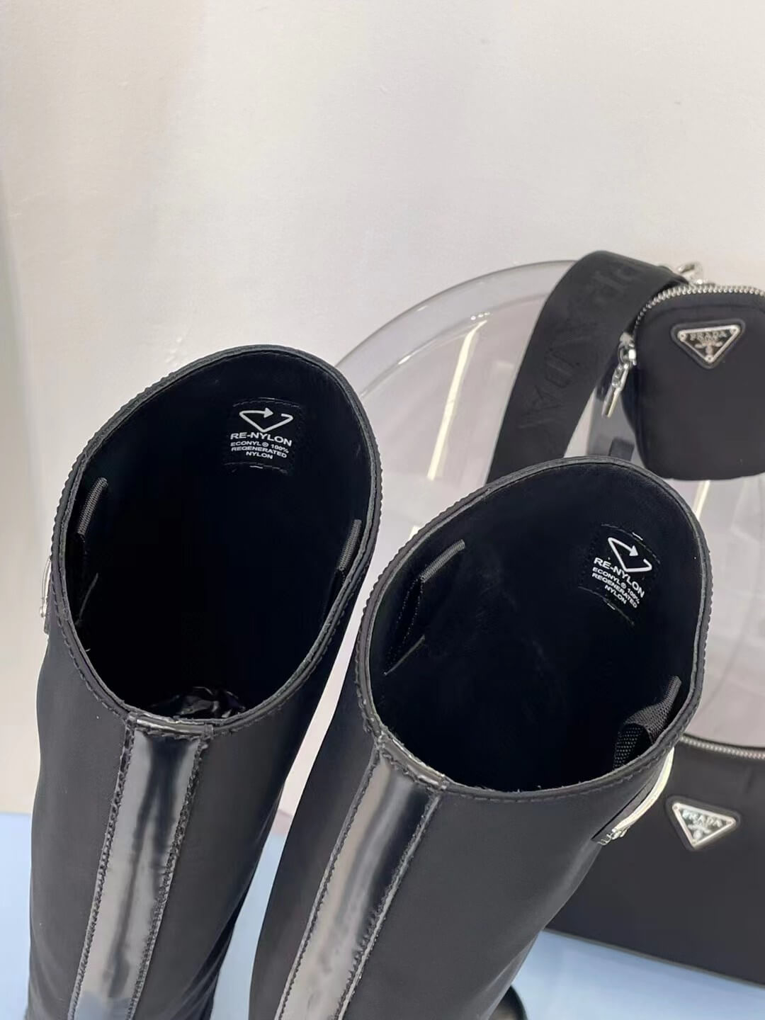 pra 1w411m brushed leather and nylon boots black