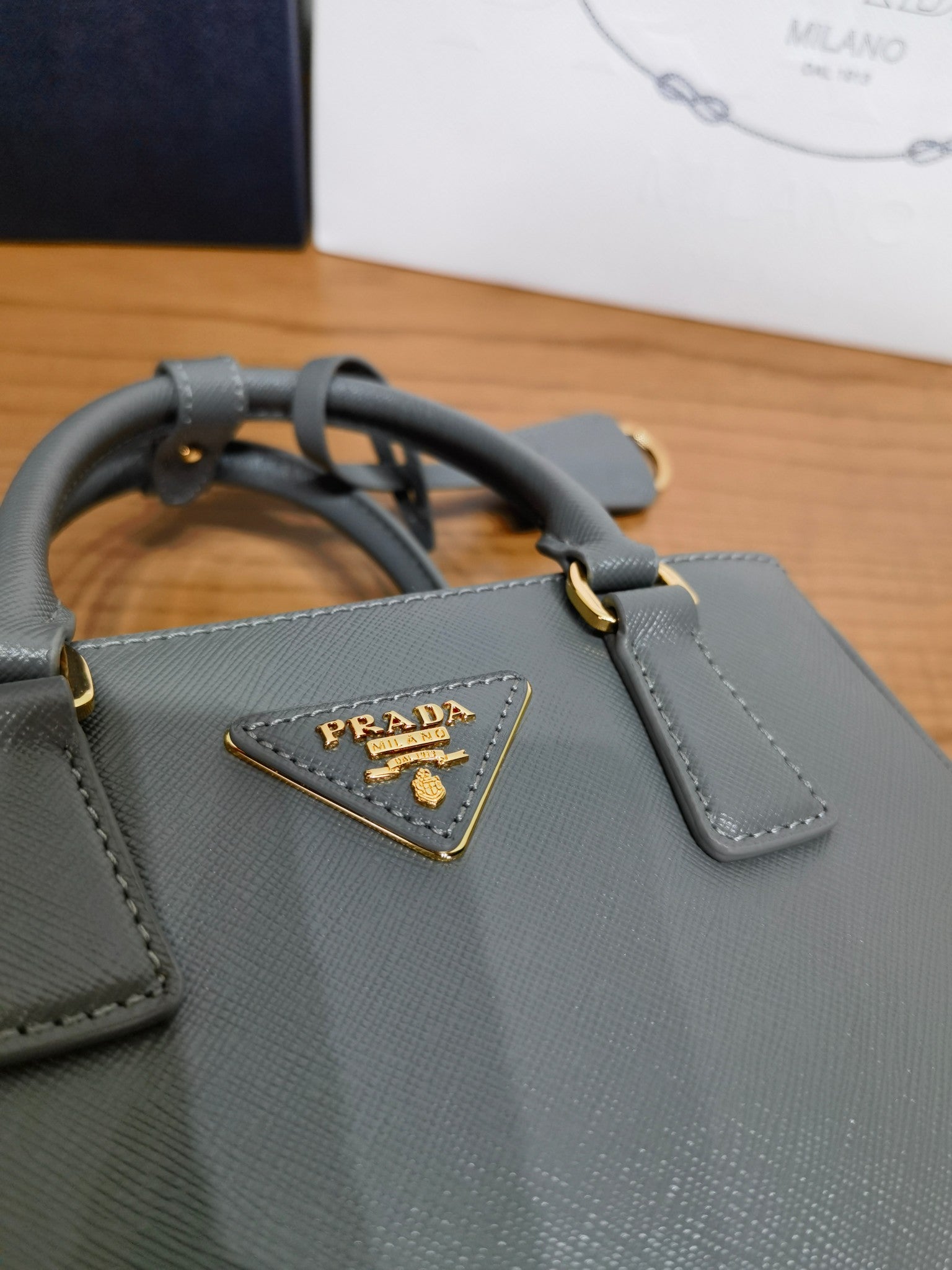 The Prada Galleria handbag showcases Prada's diverse brand characteristics with elegant and timeless design. The iconic style is presented in a novel mini version, with a slender silhouette and detachable shoulder straps for easy crossbody. The classic cross parallel line texture of Saffiano cowhide gives the handbag a unique and versatile charm