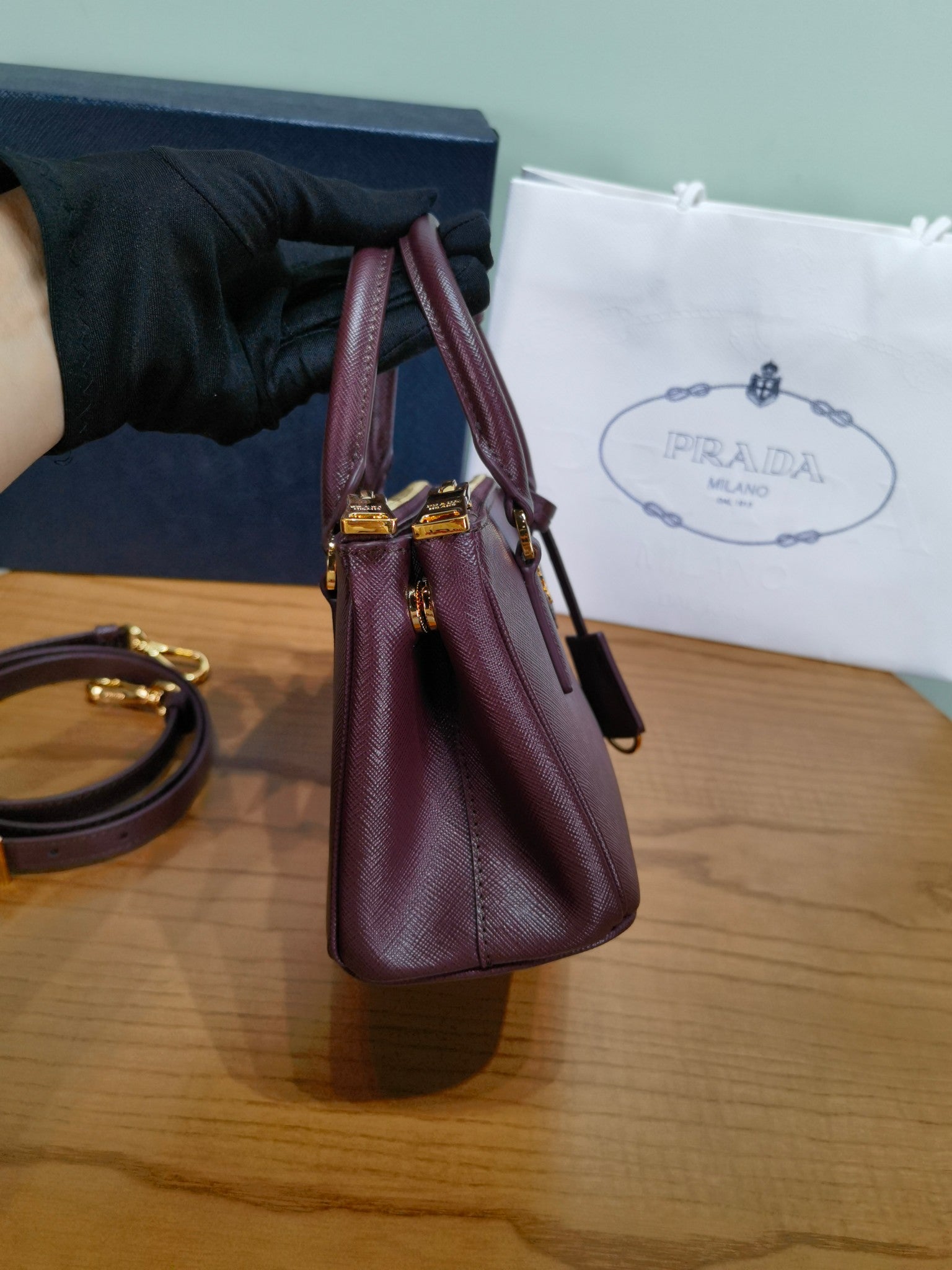 PRA New Mini Gallery Handbag Crossbags 1BA916 Wine Red Maroon