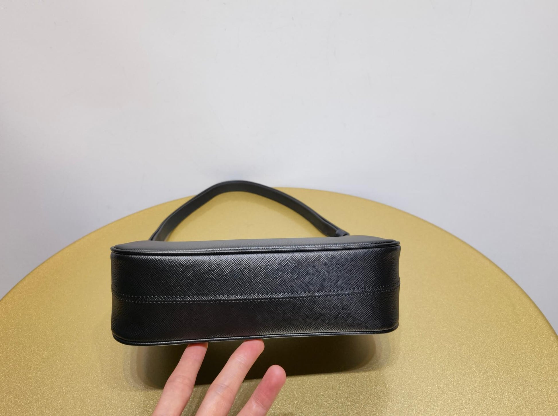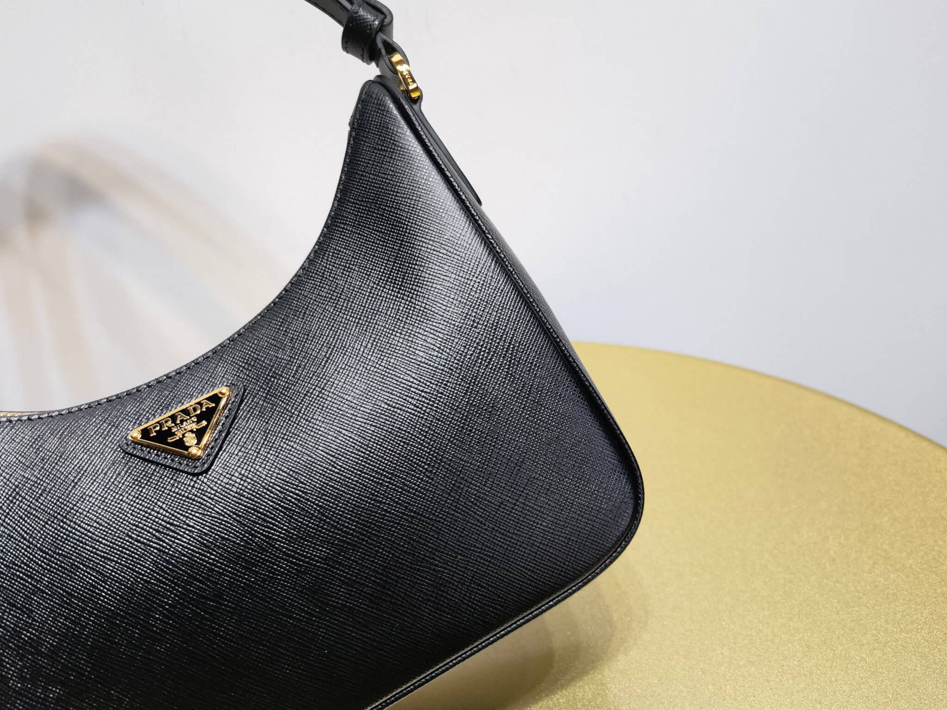 pra re edition saffiano leather mini axillary pouch bag black 1bc204