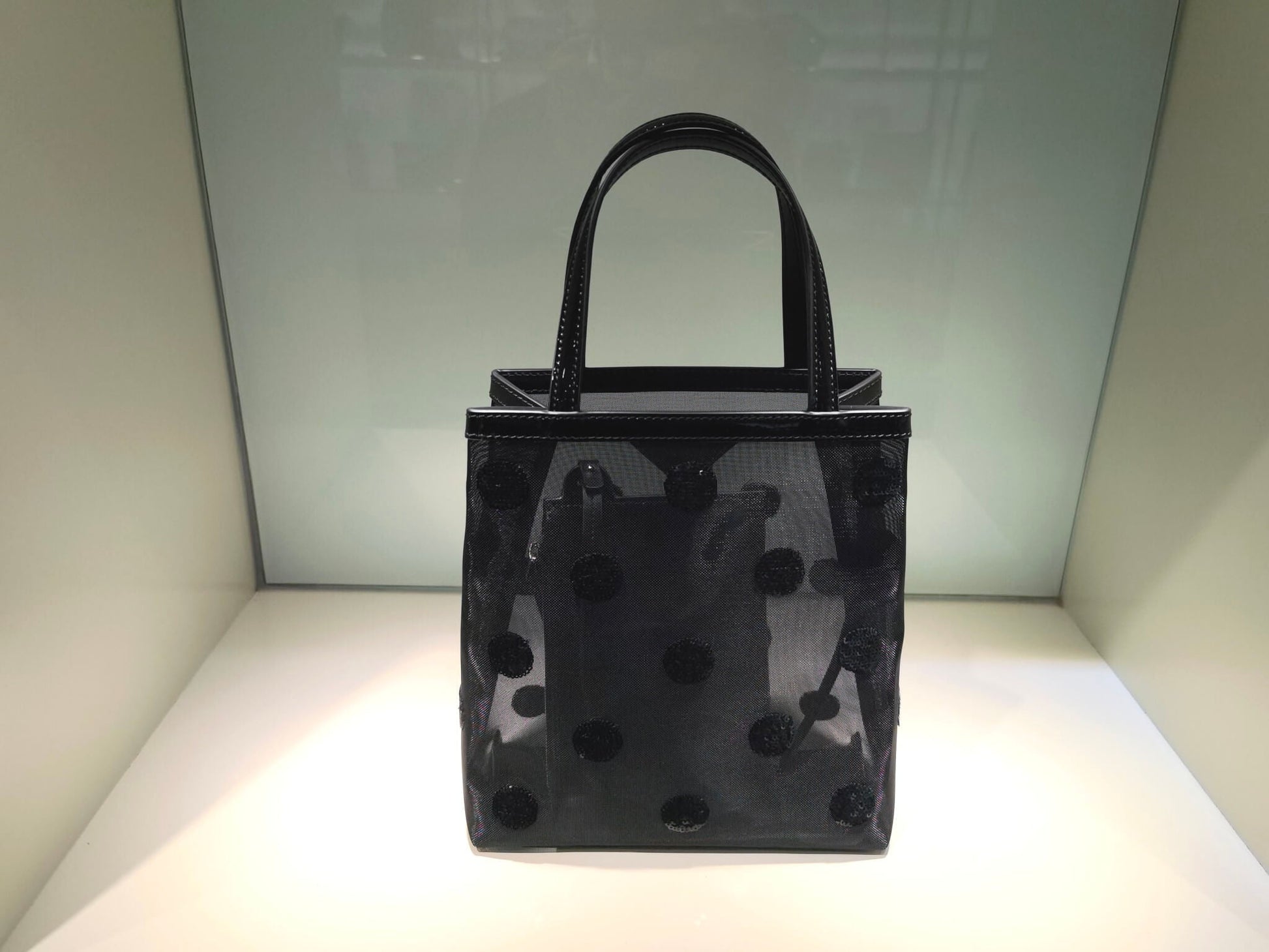 decorated with a sophisticated sequin polka-dot motif. Provided with a double handle