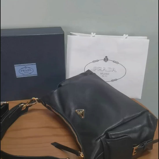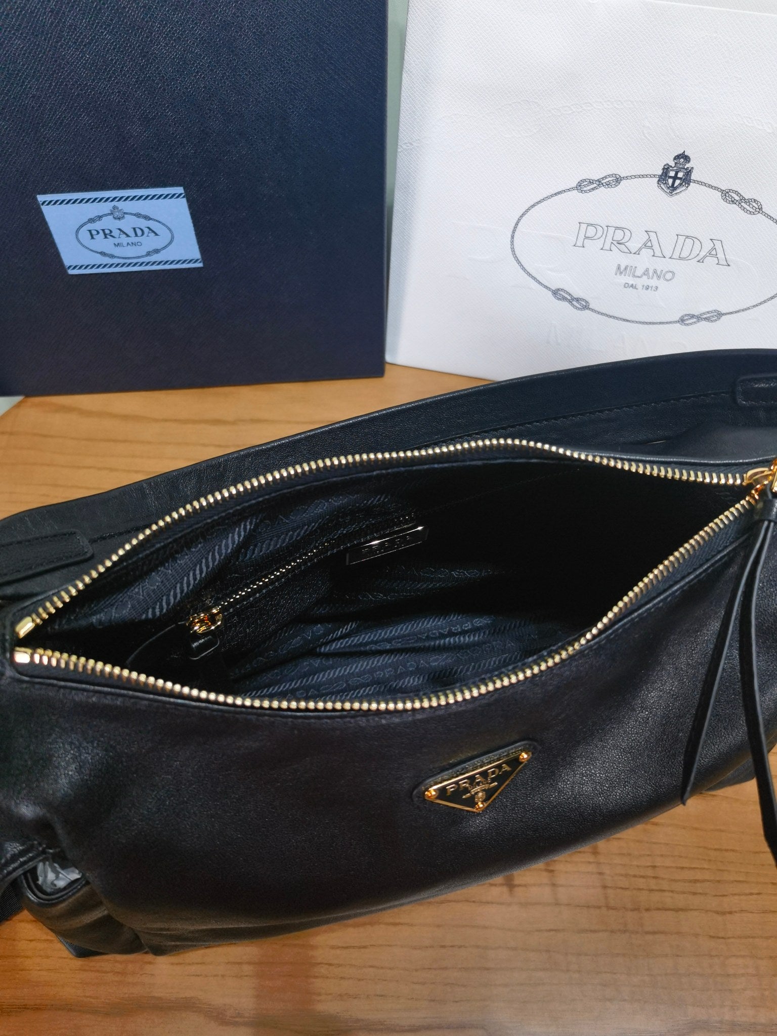 The Explore handbag perfectly combines delicacy and functionality, with a soft multi pocket silhouette. Nappa sheepskin enhances the versatility and spaciousness of this design, showcasing Prada's craftsmanship tradition with exquisite and iconic details. A fashionable item suitable for both men and women, equipped with two detachable shoulder straps that can be worn in various ways