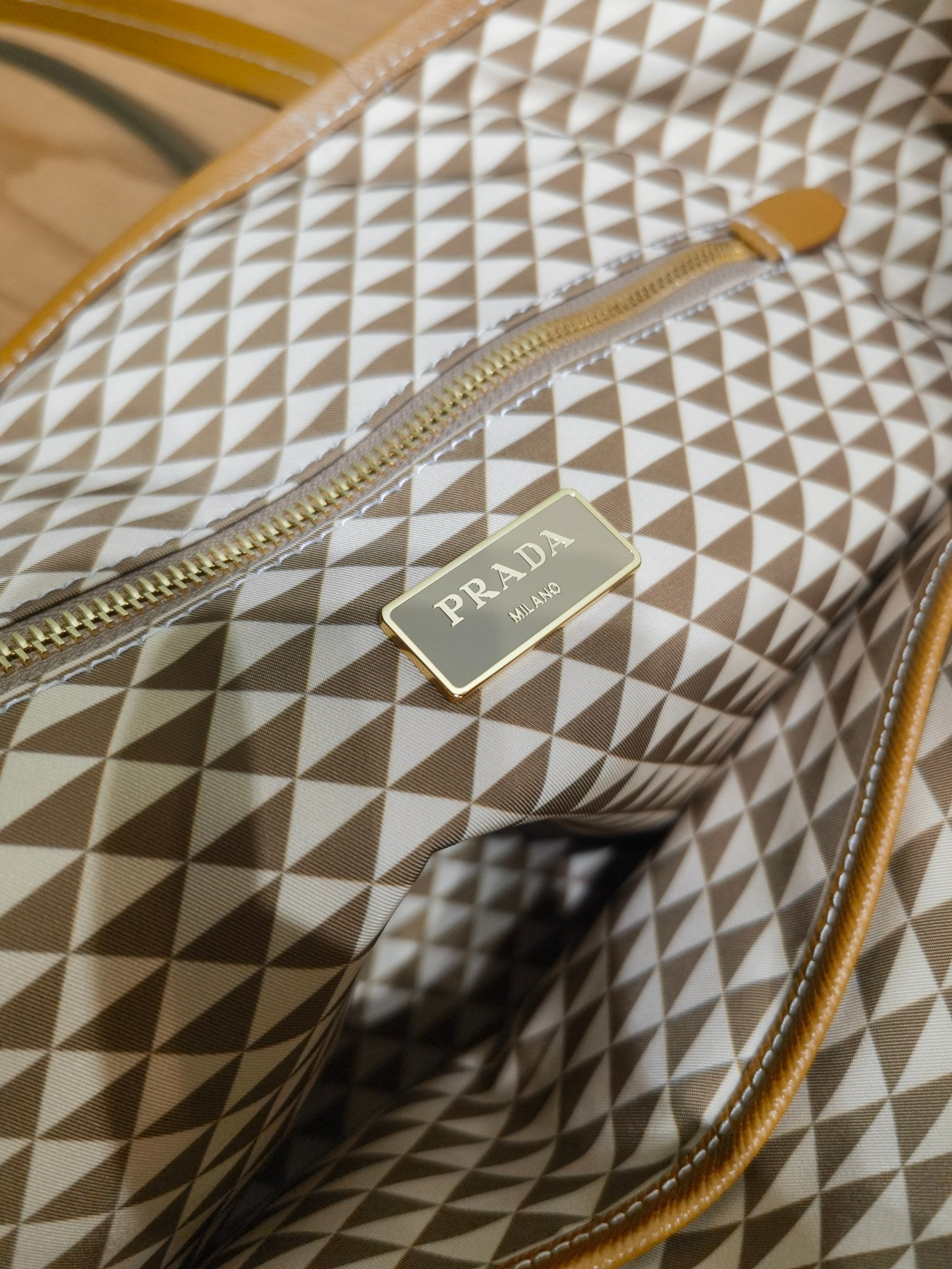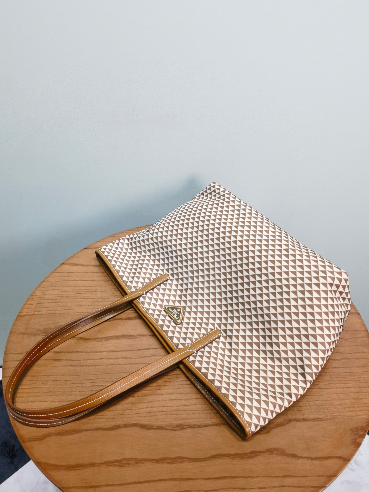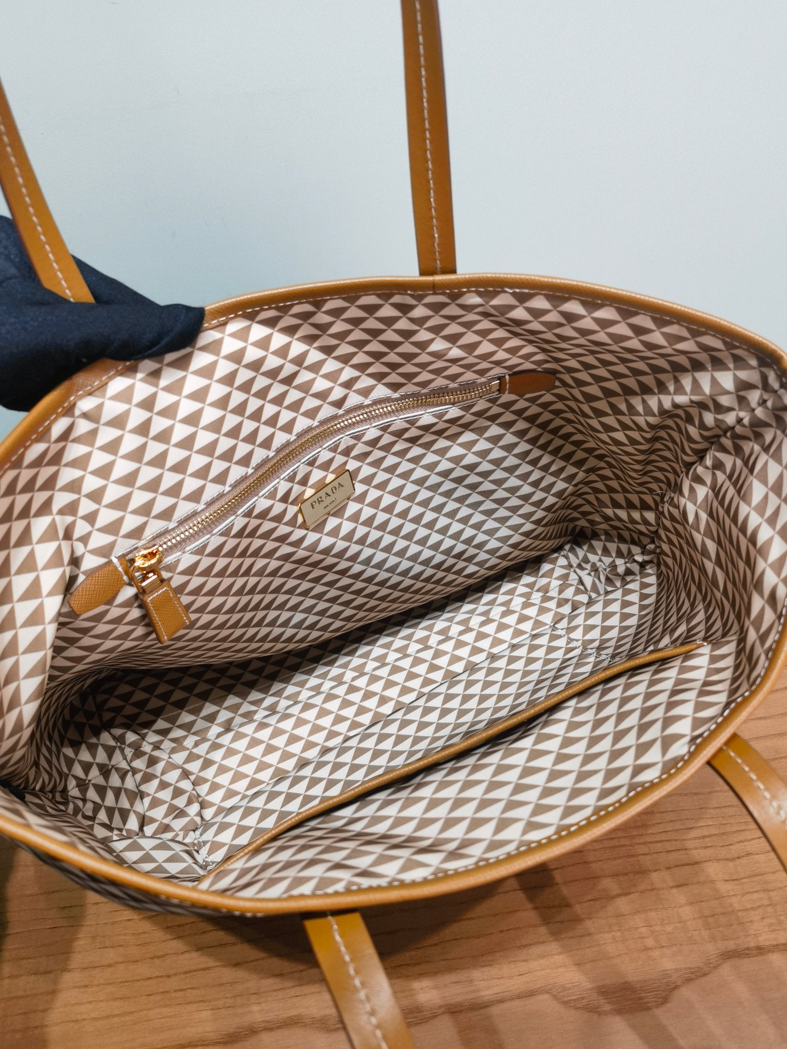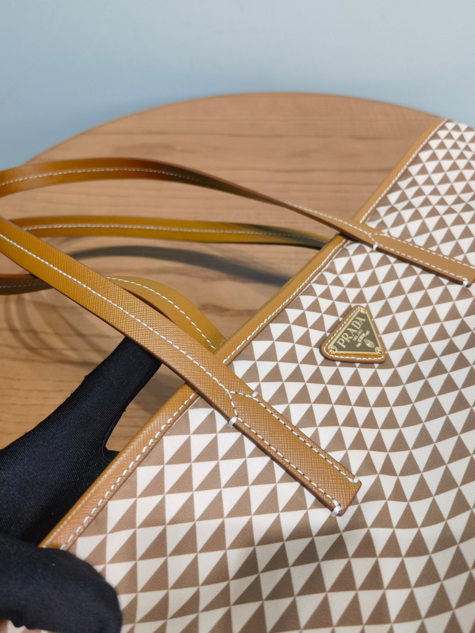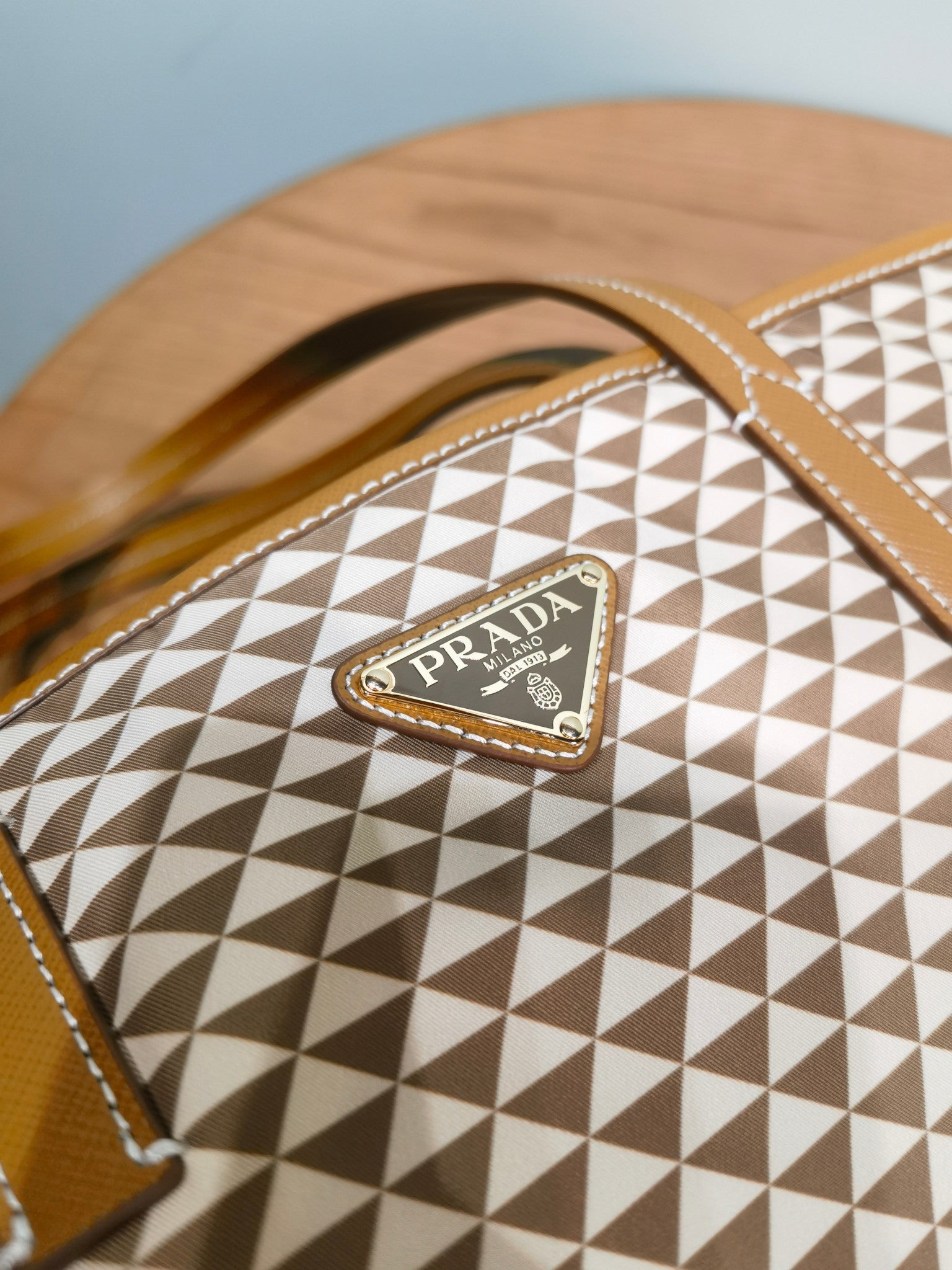 The signature Saffiano cowhide details of the brand are decorated on it.