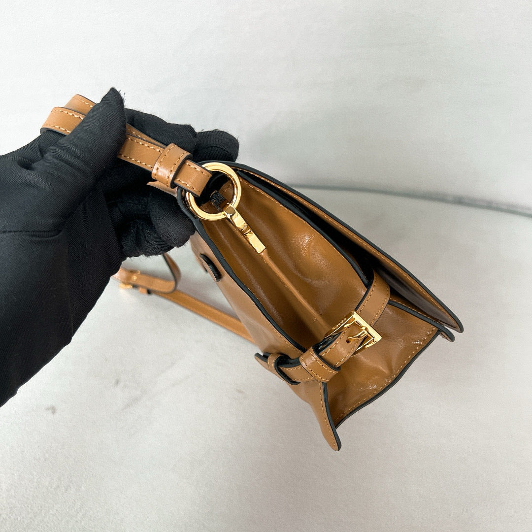 PRADA New Mini 23cm Medium Leather shoulder Postman Bag 1BD313 Brown