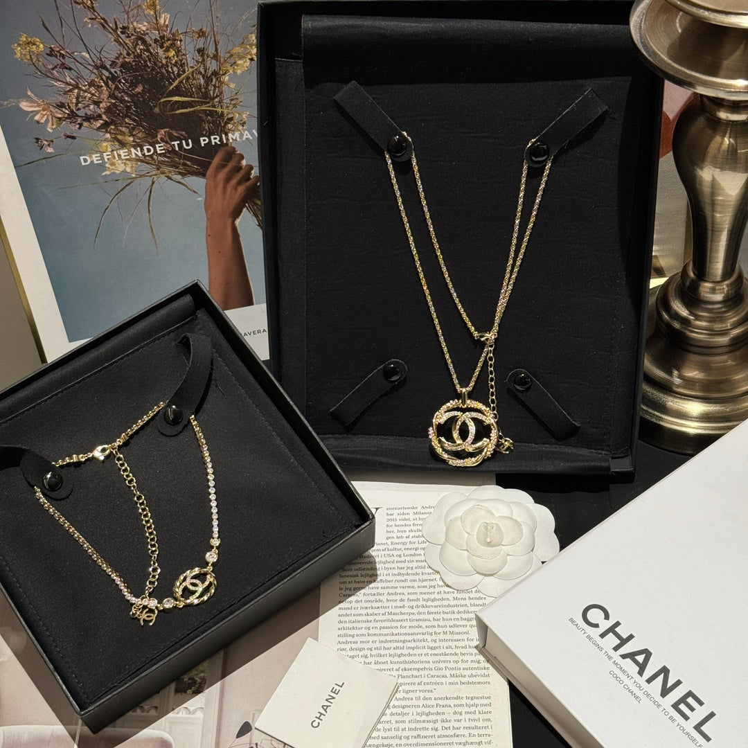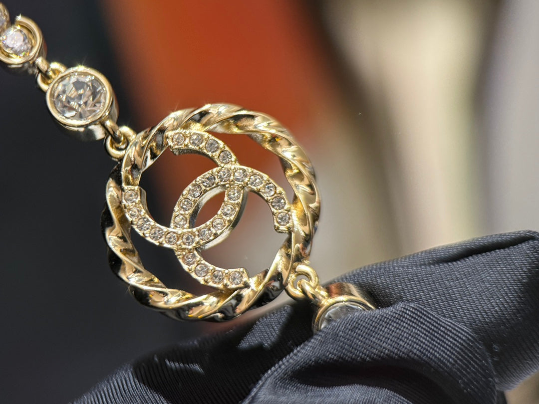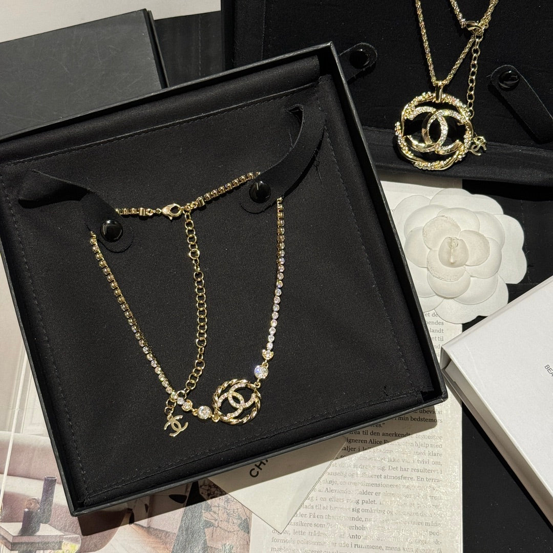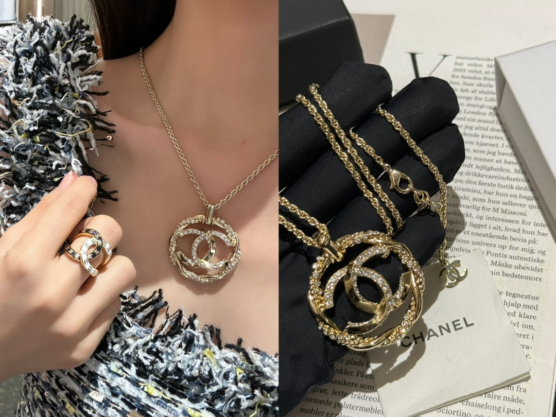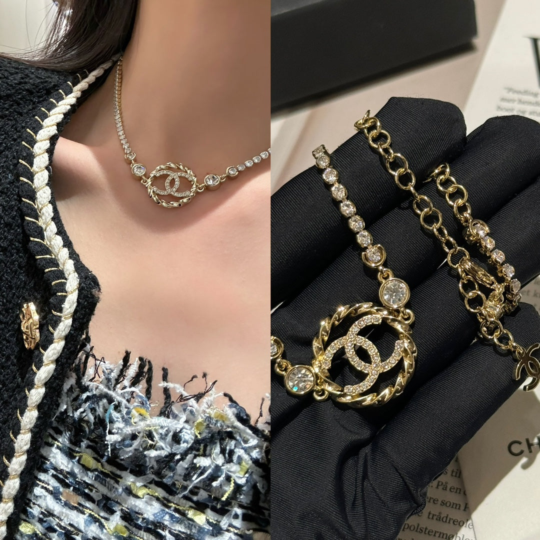Introducing the Ch@nel 23K diamond ripple ring series, featuring our stunning light gold hollowed out round water diamond necklace ???¡â?. With its simple, versatile, and delicate design, this necklace is perfect for any occasion. Made with 23K diamond and light gold, it offers a touch of elegance and luxury. Upgrade your jewelry collection with our XLC47 necklace.