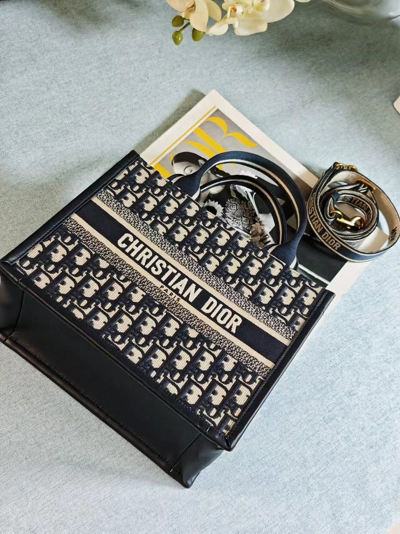 Small Dior Book Tote M928 Dark Blue