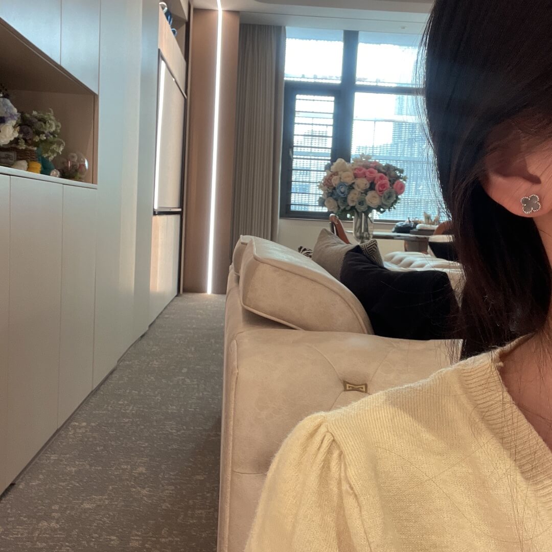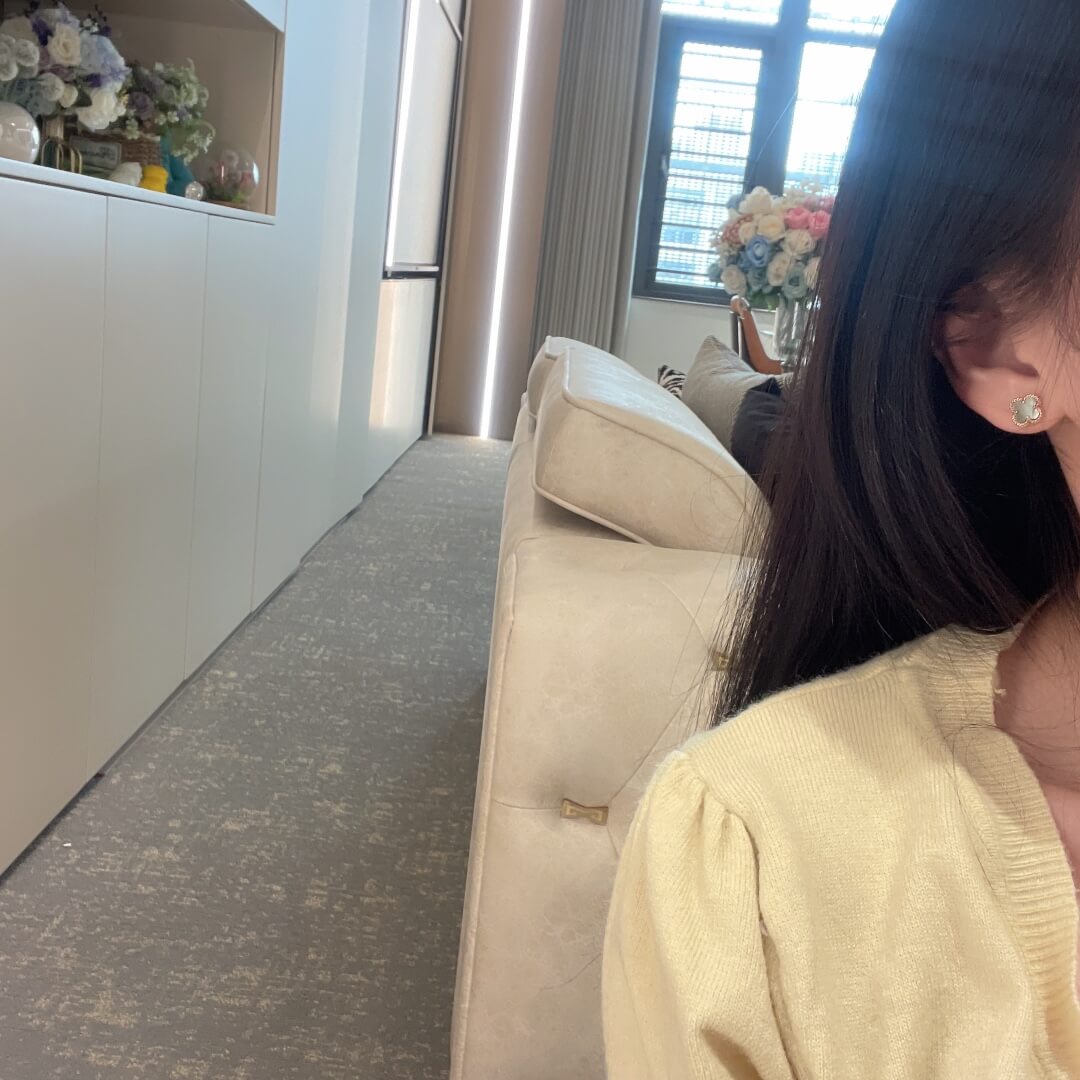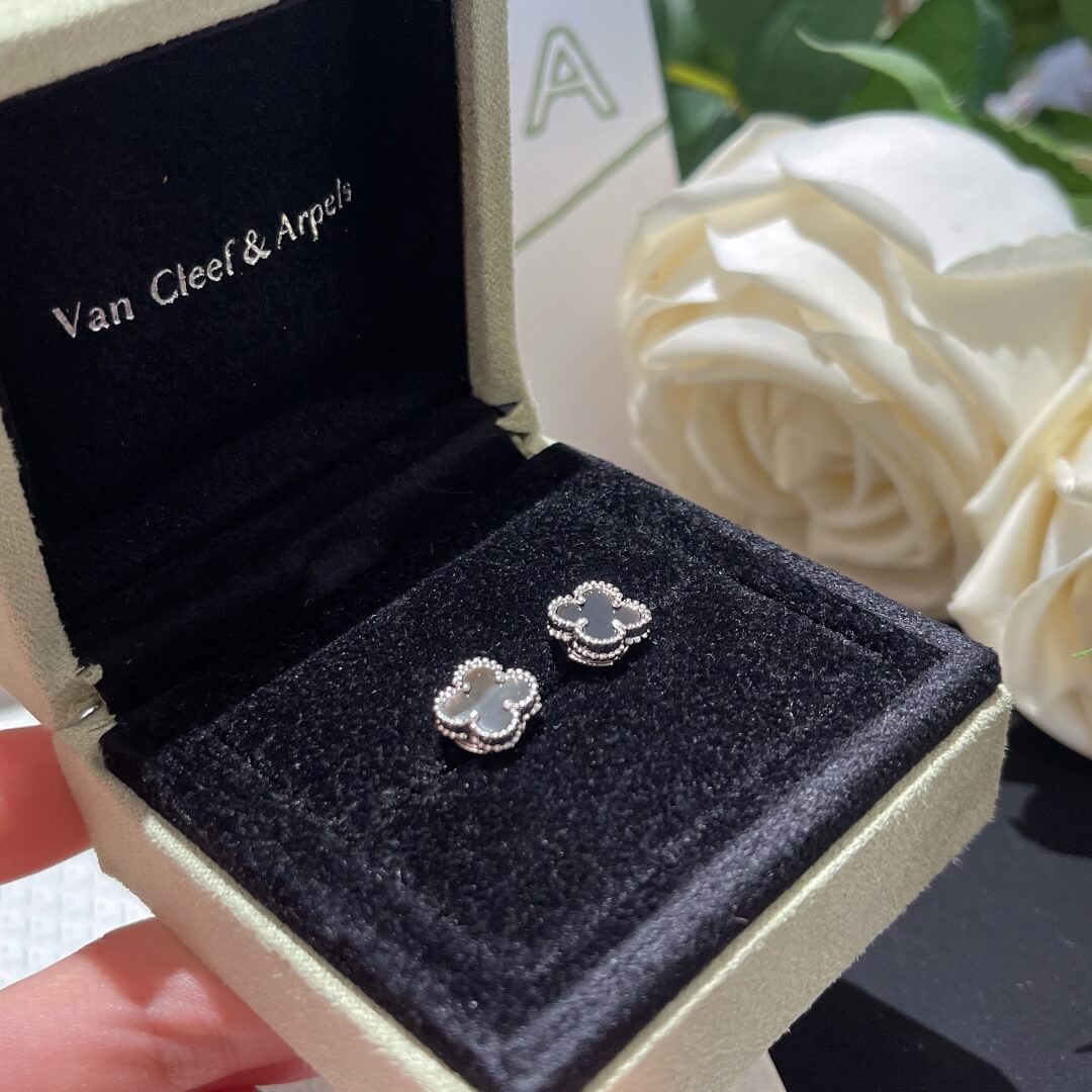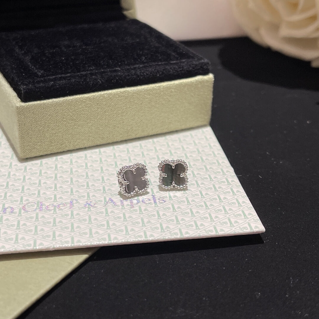 TH043 Beaded Four Leaf Stone Stud Earrings
