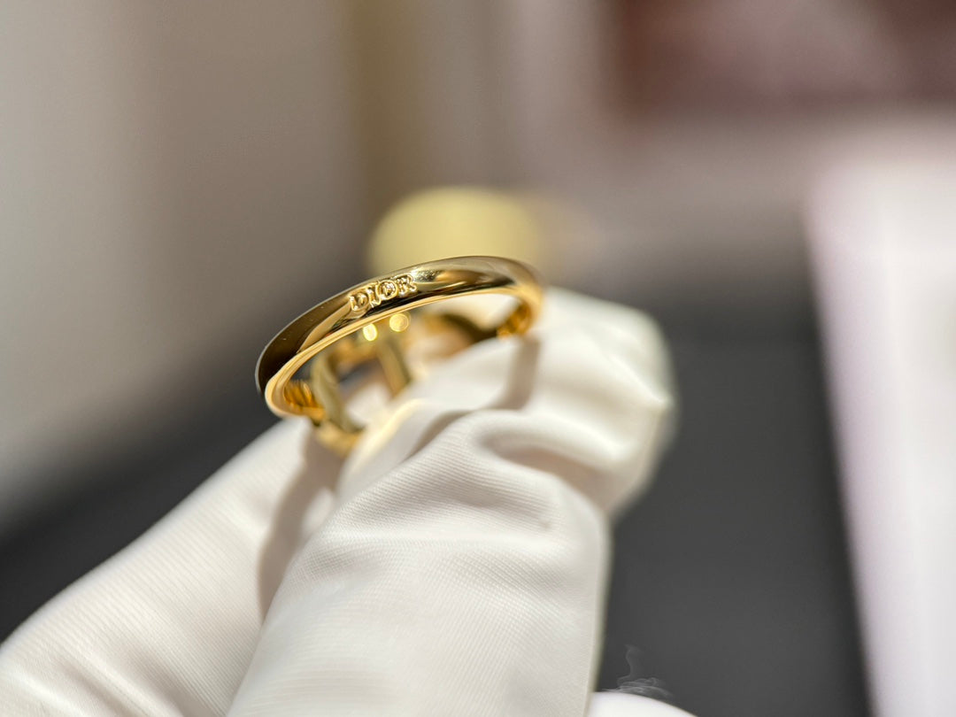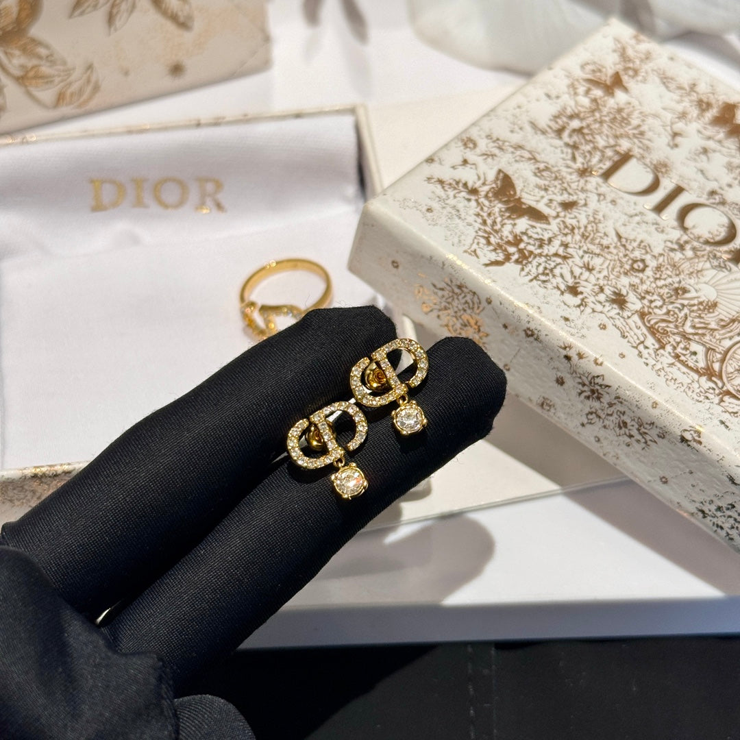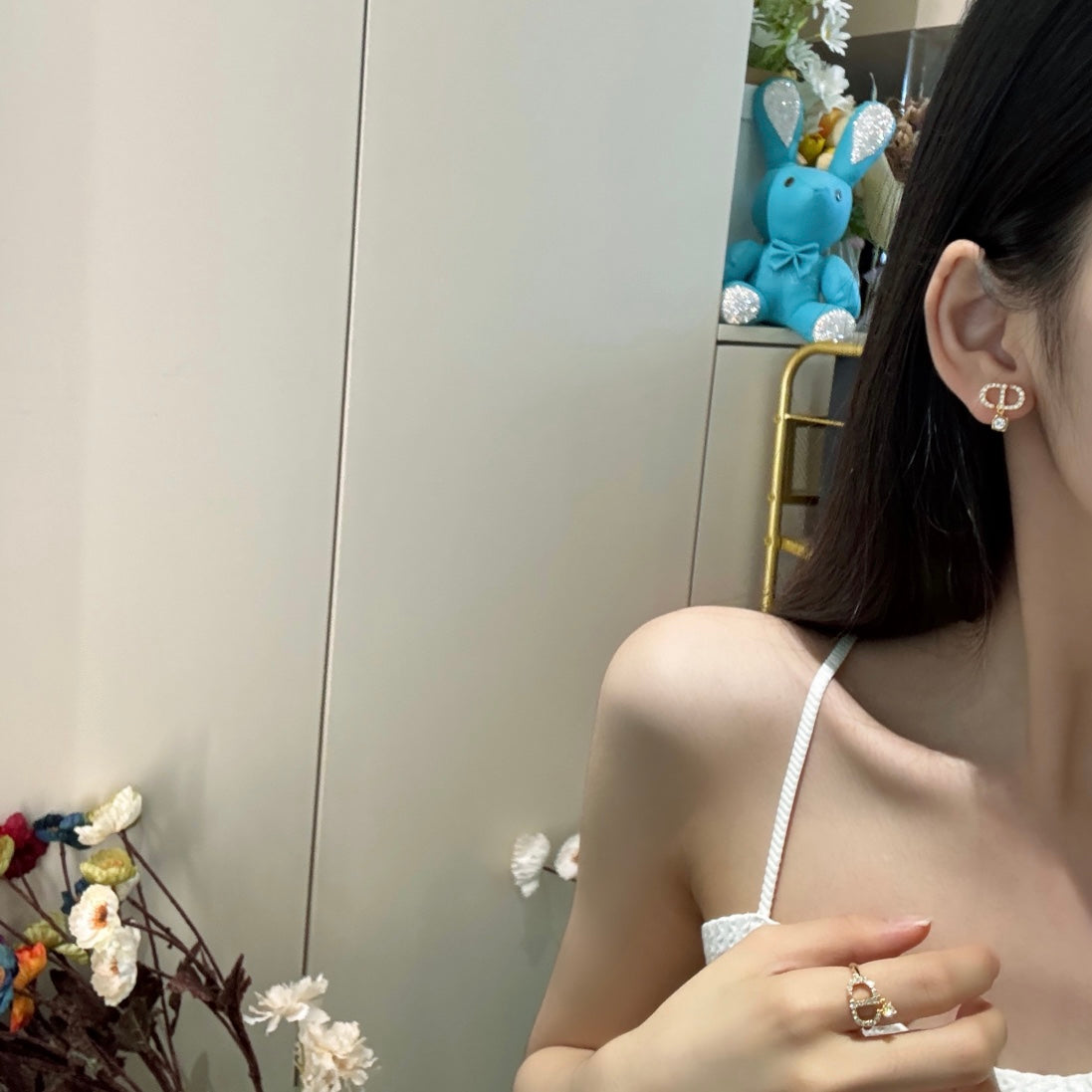 Introducing the Tribales series gold letter studded diamond earrings from Dior's renowned Tribales collection. These ring earrings are adorned with gold accents and silver toned imitation crystals, making them both casual and versatile. Elevate any outfit with these stunning, high-quality earrings.