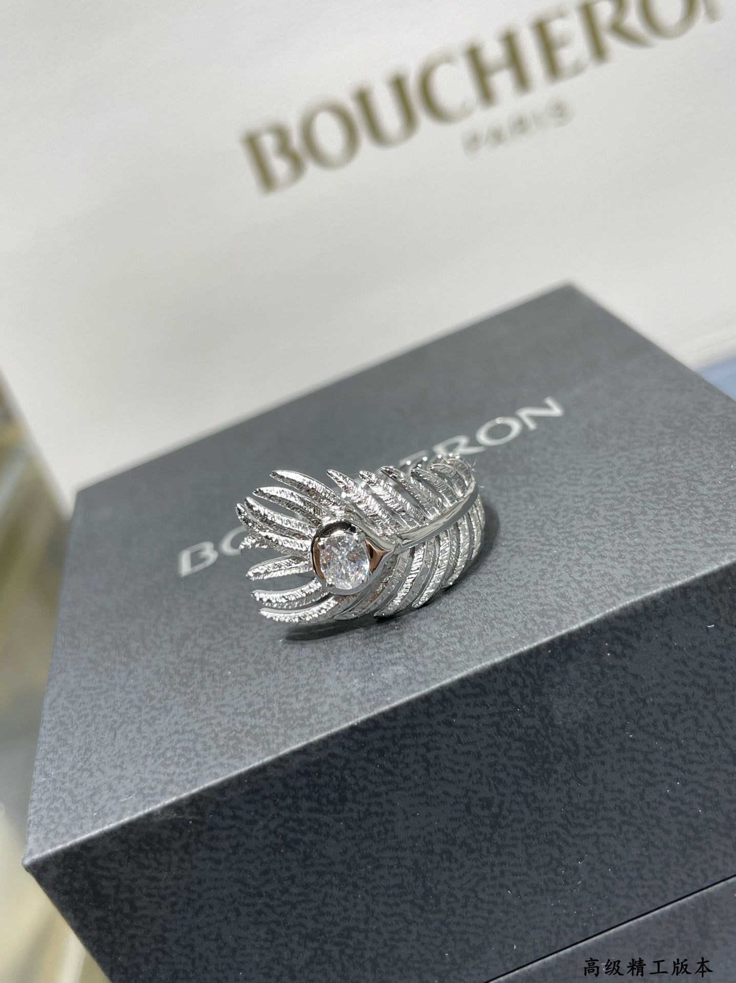 Made with V Gold material (Code: 5678), the Baoshi Dragon Light Face Feather Ring features a delicate feather shape that exudes charm and radiance. This ring empowers women with confidence and ease, as if they have wings to freely soar. Add a touch of elegance and become the center of attention in any occasion. Quality and craftsmanship by Baoshi Dragon at its finest.