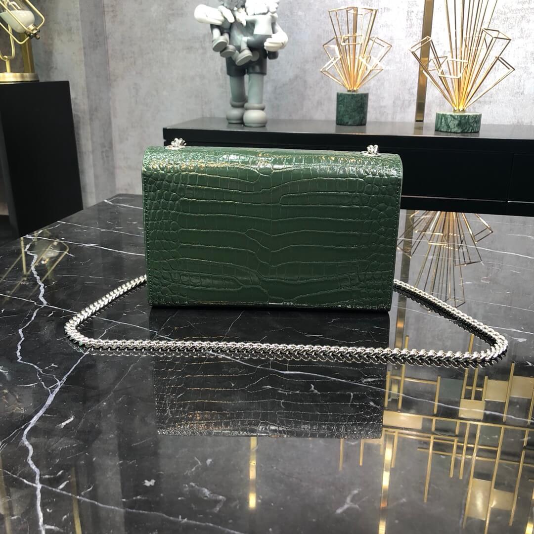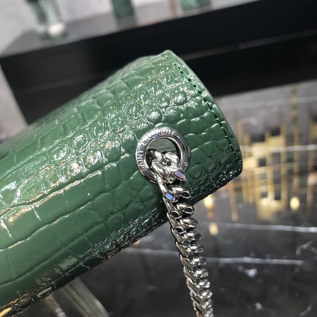 ys l cross body chain sling bags gree crocodile texture calfskin rose silver 474366