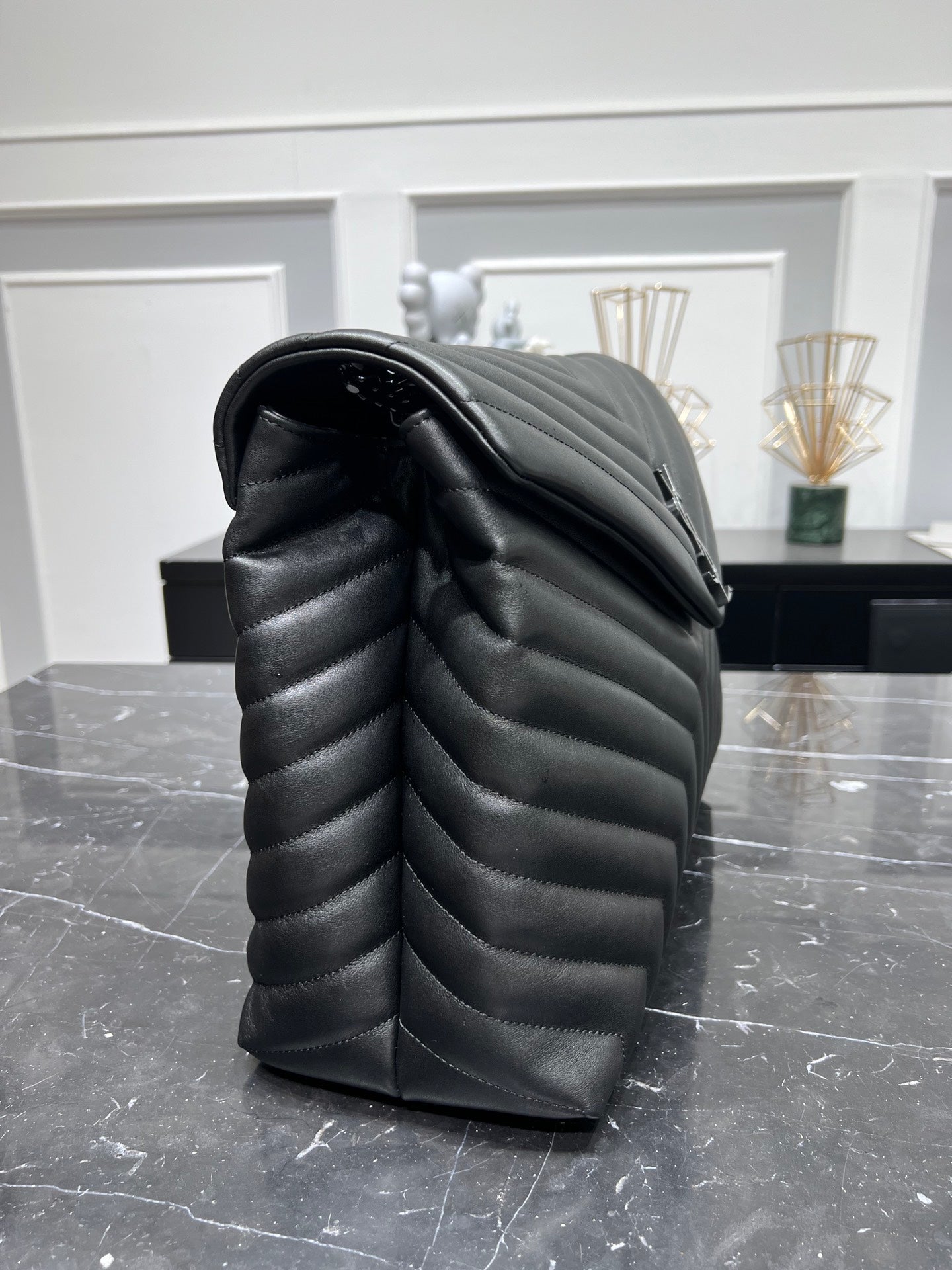 ysl 457014 loulou front flap bag black hardware supper big size 38cm