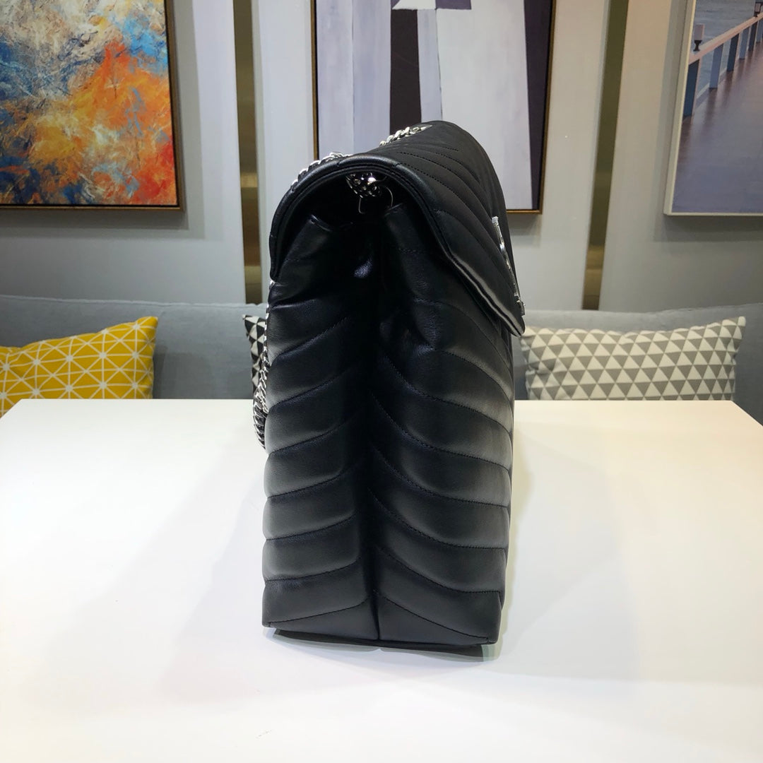 ysl 457014 loulou front flap bag silver hardware supper big size 38cm