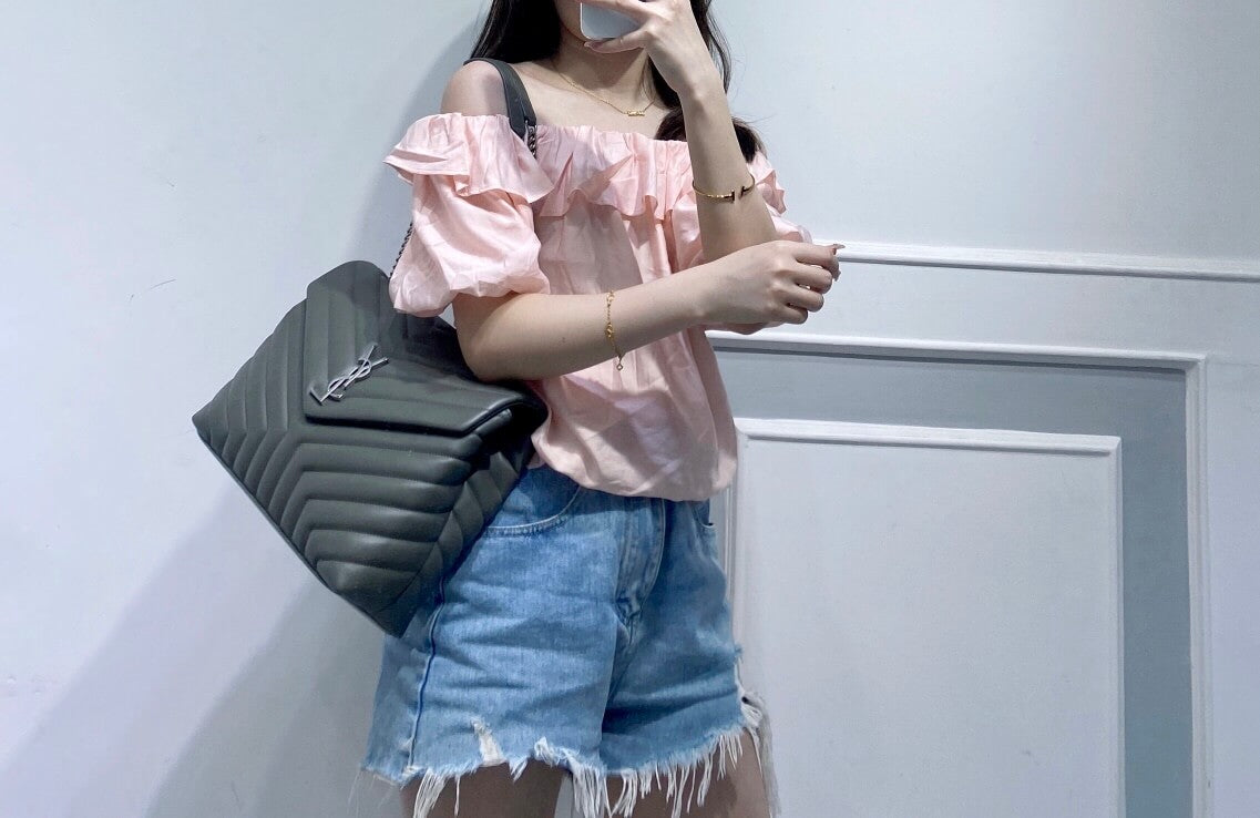 ysl 459749 shoulder bag grey yellow metal white