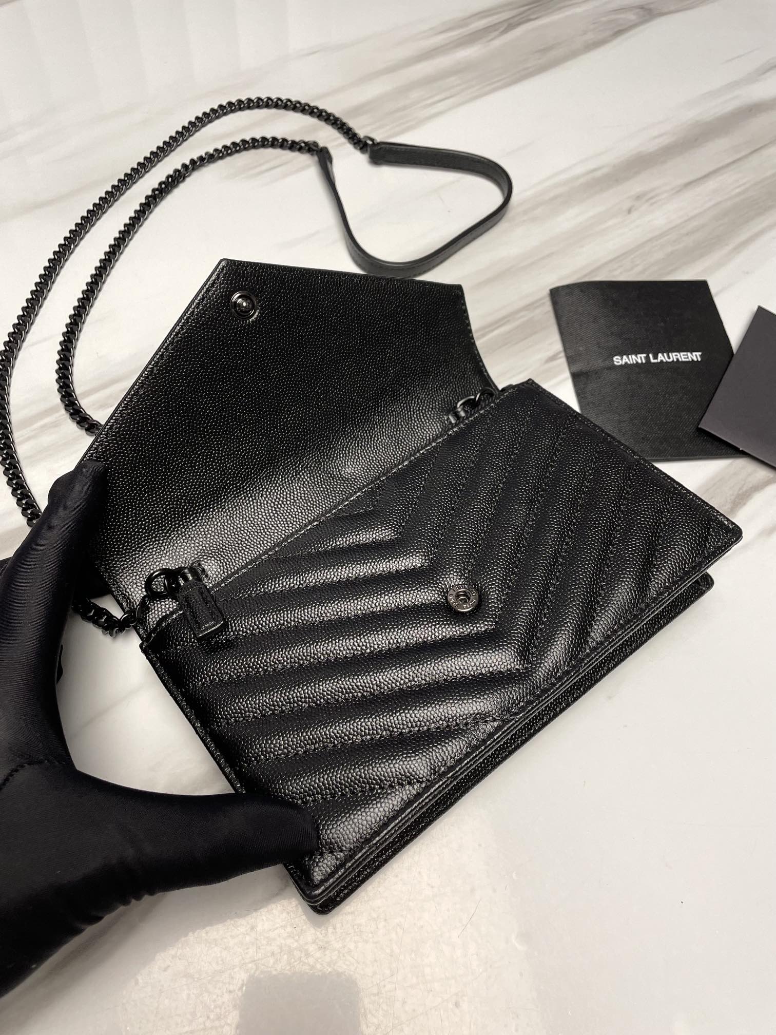 ysl black envelope small bag in mix matelasse grain de poudre embossed leather