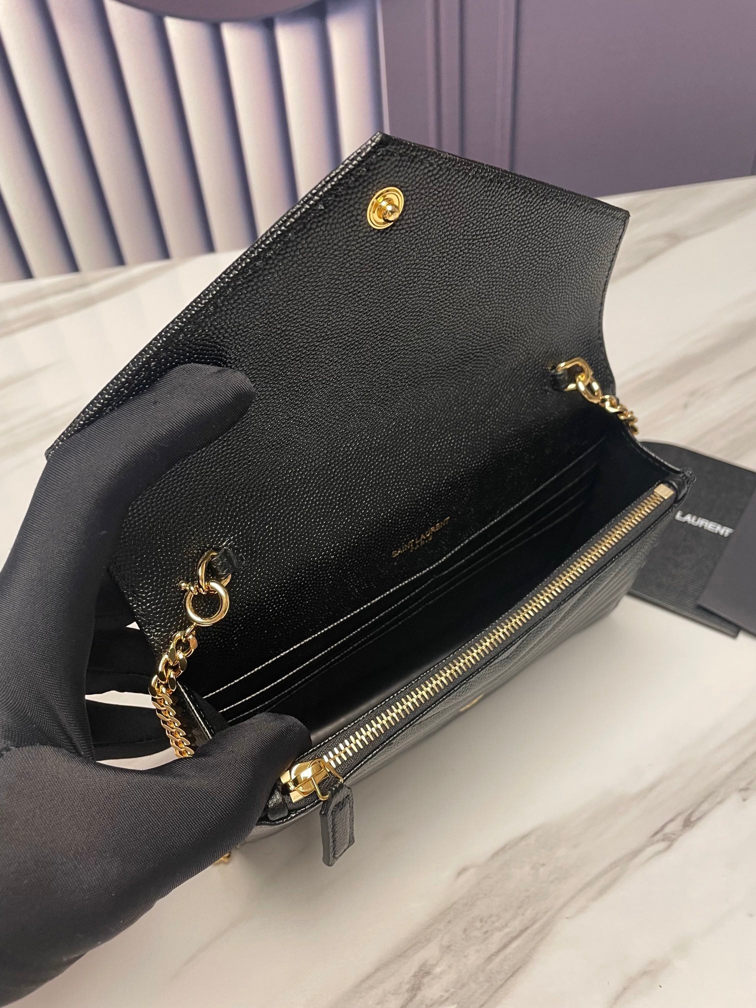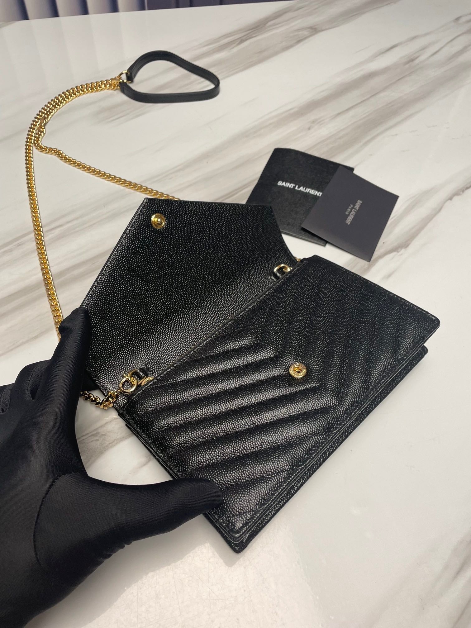 ysl black gold hardware envelope small bag in mix matelasse grain de poudre embossed leather