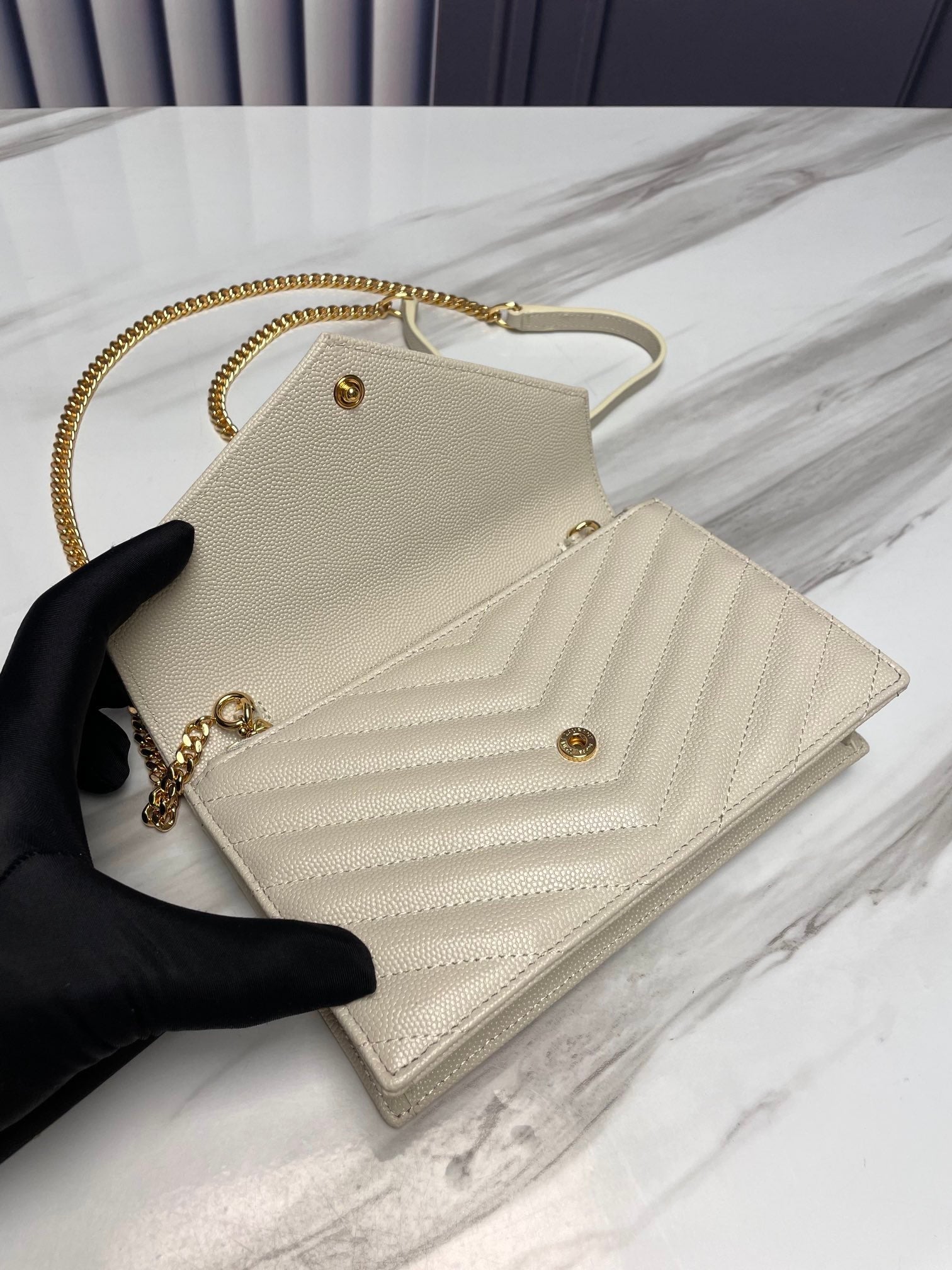 ysl white gold hardware envelope small bag in mix matelasse grain de poudre embossed leather 393953